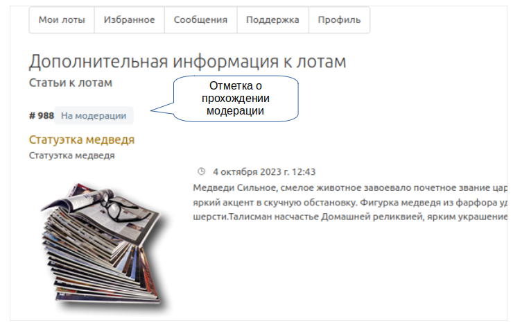 Log in to your Personal Account. In the "My Lots" section, at the bottom right, there is a "Your Articles" button.
