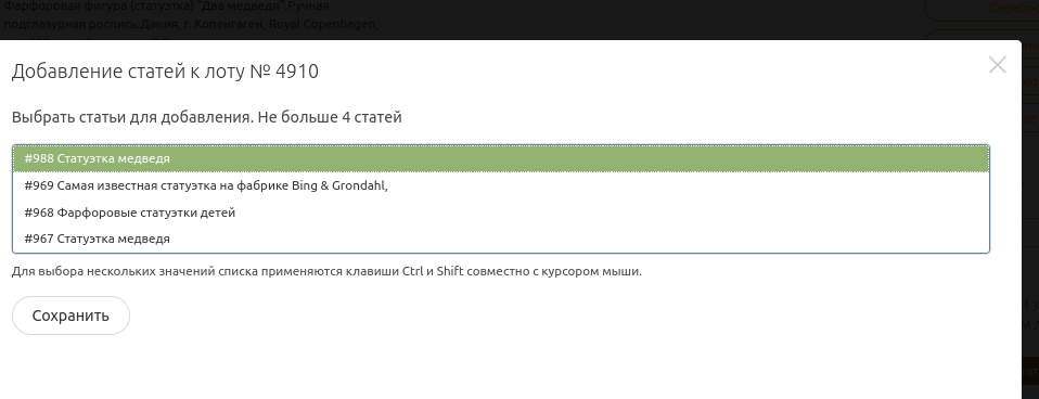 Adding an article to the lot description helps them get a more complete understanding of the product, its history, and its value. As a result, this can increase the likelihood of a successful sale and satisfy the needs and expectations of buyers.