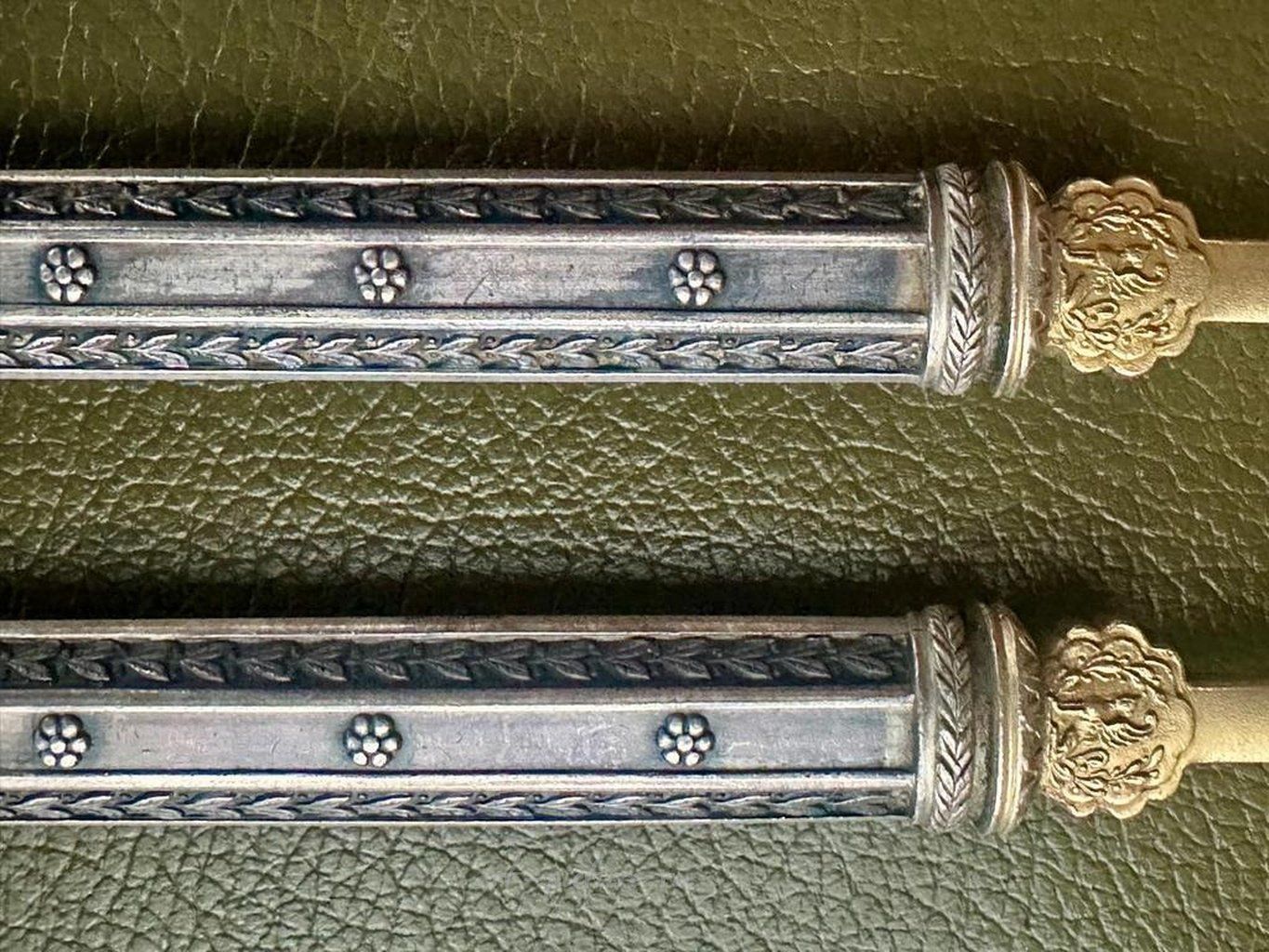 Вы правильно отметили, что стиль этих вилок, очевидно, попадает в диапазон классики и ампира. Это так интригует! Стиль ампир известен своим величием и декоративностью; он действительно стремится подчеркнуть статус и благородство. Я помню, как я впервые увидел подобные изделия на выставке, и меня поразило мастерство, вложенное в каждую деталь: как можно было так искусно комбинировать функциональность с художественным выражением! Это волшебно!