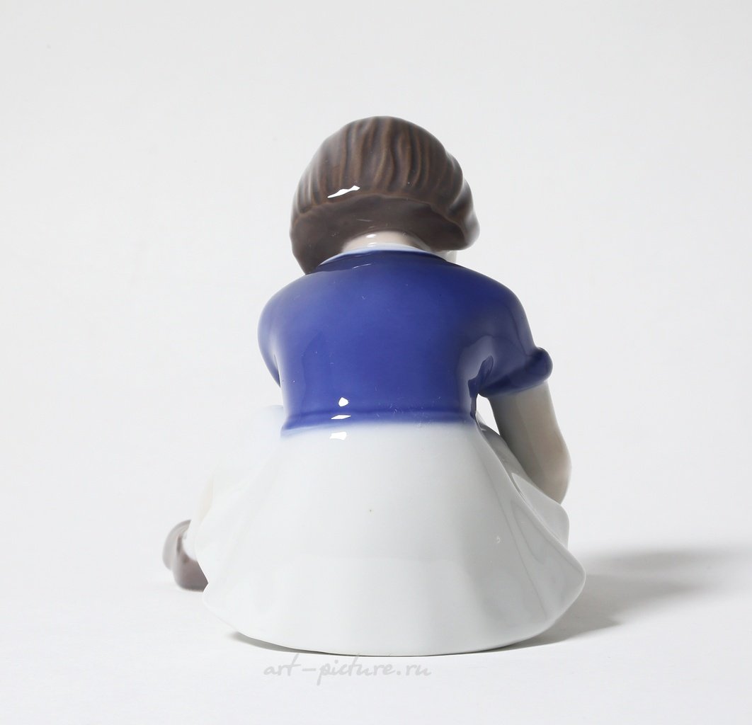 "Girl fastening her shoe. Denmark, Copenhagen, Bing & Grondahl."