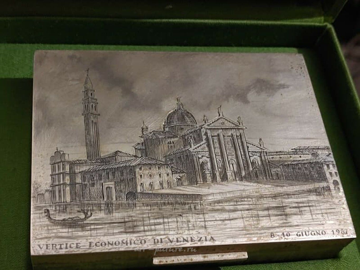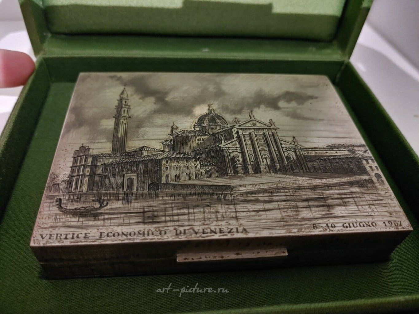 Контекст, в котором была создана гравюра, также добавляет интересный слой к её значению. Гравировка, созданная ко времени экономического саммита в Венеции в 1987 году, становится не просто картинкой, но и документом, фиксирующим исторический момент и подчеркивающим важность города как культурного и экономического узла. Это делает её более чем просто эстетическим объектом — она становится важной частью истории и культурного наследия.