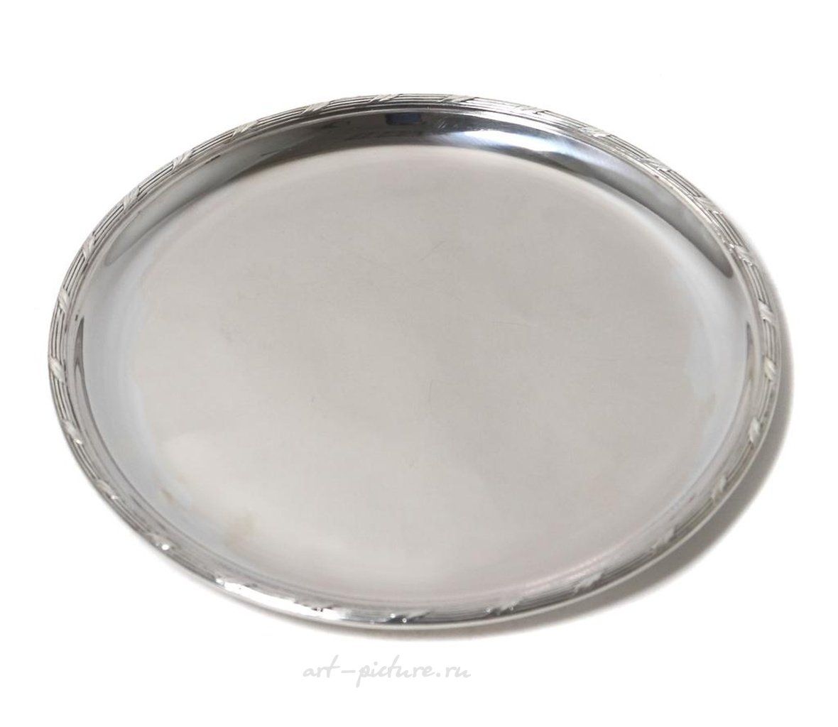 Silver coaster or tray. Sweden, Stockholm, 1924, workshop of W.A. Bolin - the workshop of the heirs of the great Russian jeweler Wilhelm (Vasily) Andreyevich Bolin from the famous dynasty of hereditary court suppliers to the Russian Empire, who immigrated to Sweden in the early 20th century. Height: 1.2 cm, diameter: 21.5 cm. Weight: 295 grams of silver 830 fineness.
