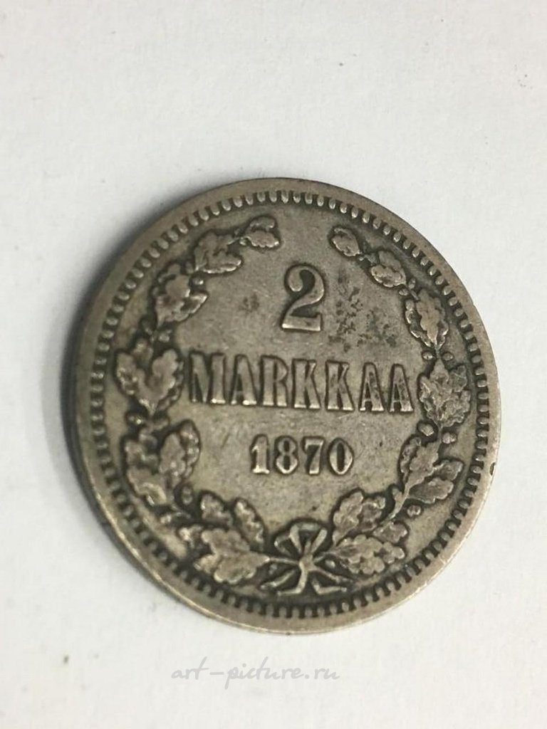 1870 Finland (Russian Occupied) 2 Markka- 86.8% Silver Beauty Old Silver Coin. View Photos For Further Details.