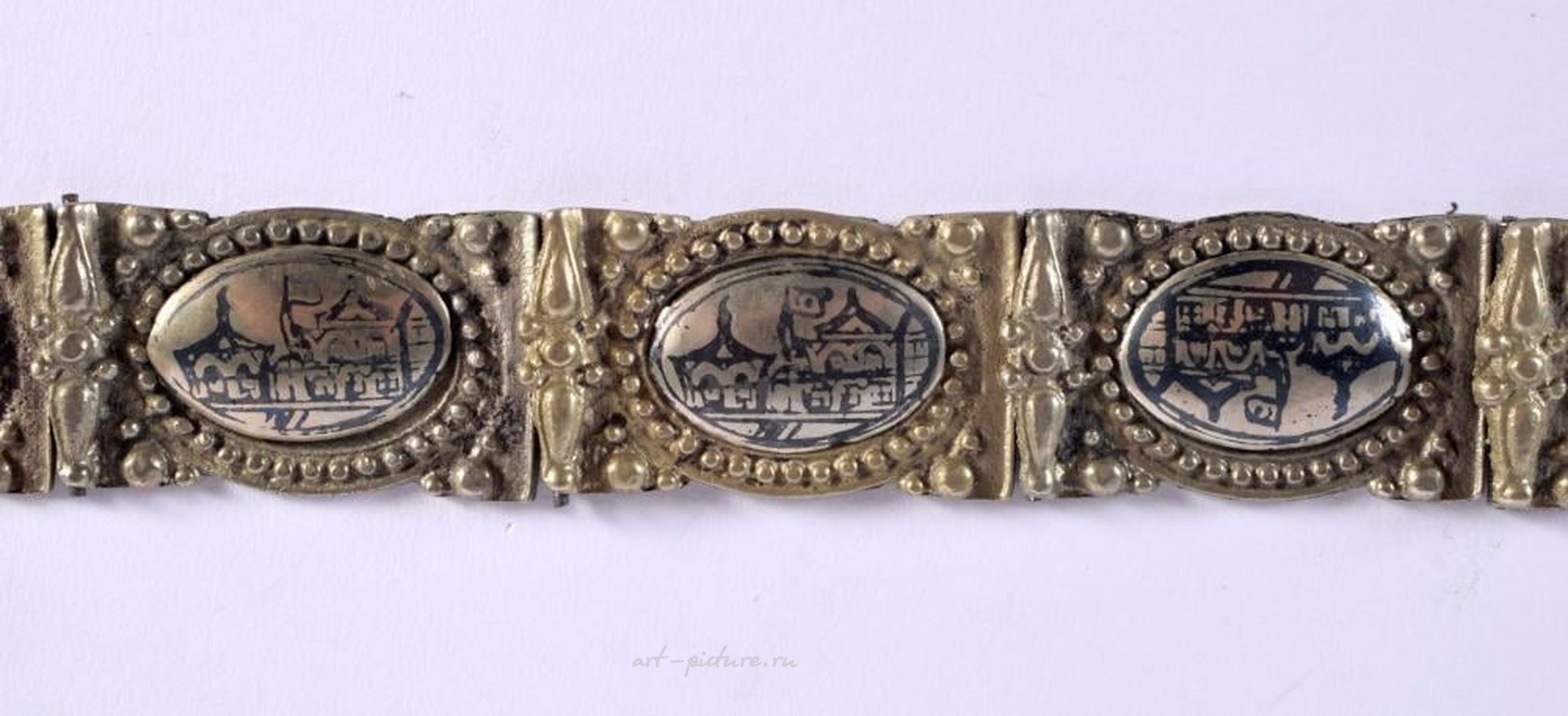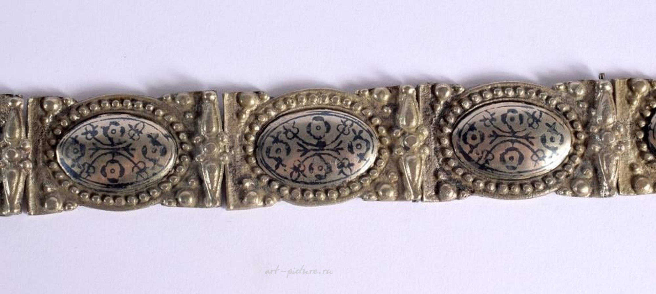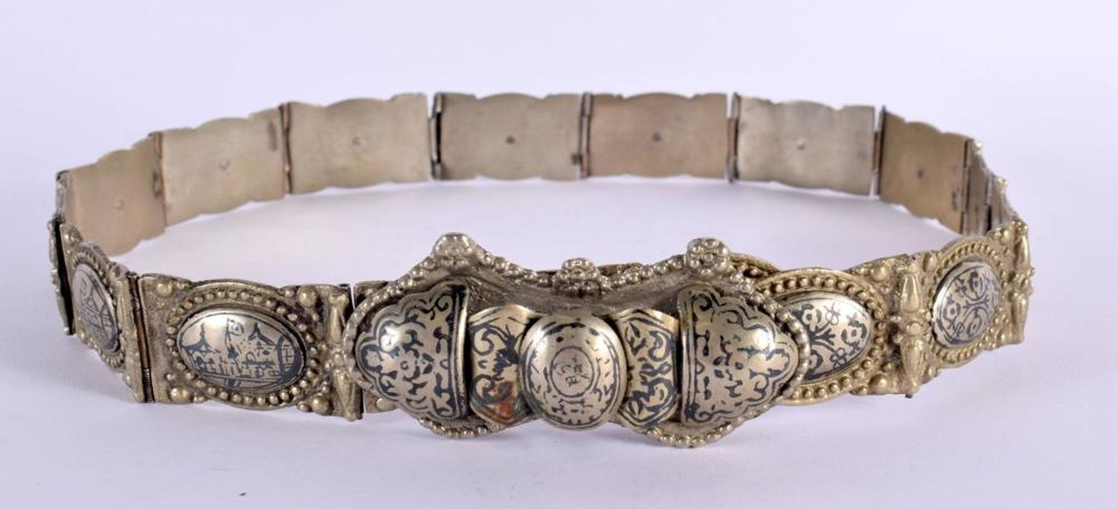 A TURKISH ARMENIAN RUSSIAN NIELLO SILVER BELT decorated with foliage. 398 grams. 77 cm long.