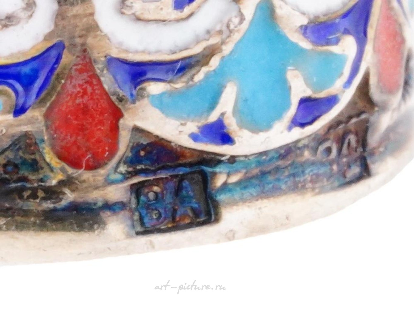 A Russian gilt silver thimble decorated with multicolor enamel floral patterns on the lower rim. Hallmarked with 84 Russian silver proof and manufacturer marks. Total weight: 7 g. Russian Silver Thimbles And Accessories For Collectors.