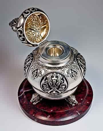 Products decorated with guilloche technology with enamel coating have been very popular since the time of Faberge. Guilloche is an ornament made in the form of a dense grid of wavy lines that intertwine with each other in a special way, creating a pattern. Guilloche patterns give the surface of the products a special beauty, which, shimmering in the rays of light, looks very expensive and exquisite. Faberge, a world-famous company, has developed over 200 variants of guilloche and in the XIX century used more than 150 shades of colors. Faberge's famous Easter eggs still amaze the curious with the play of colors and the perfection of details.