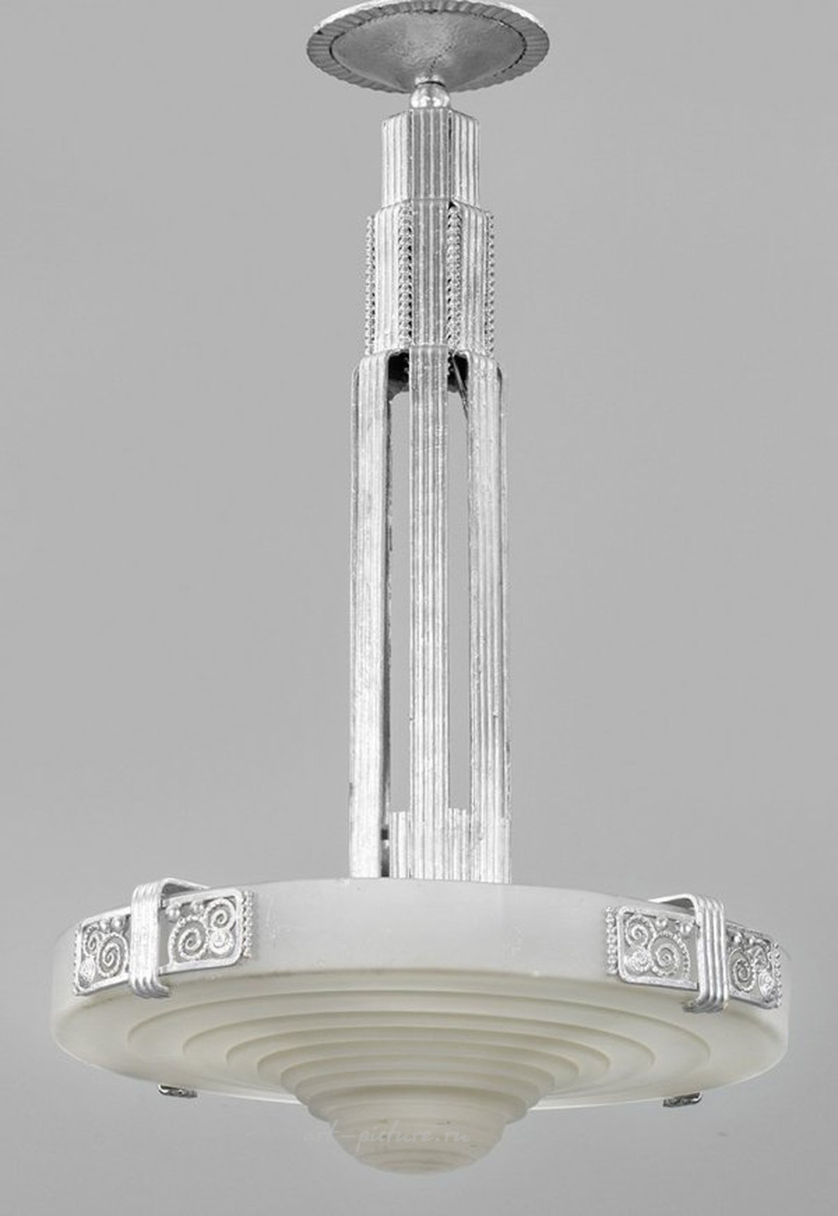 "Французская потолочная лампа в стиле ар-деко, покрытая серебристым лаком",