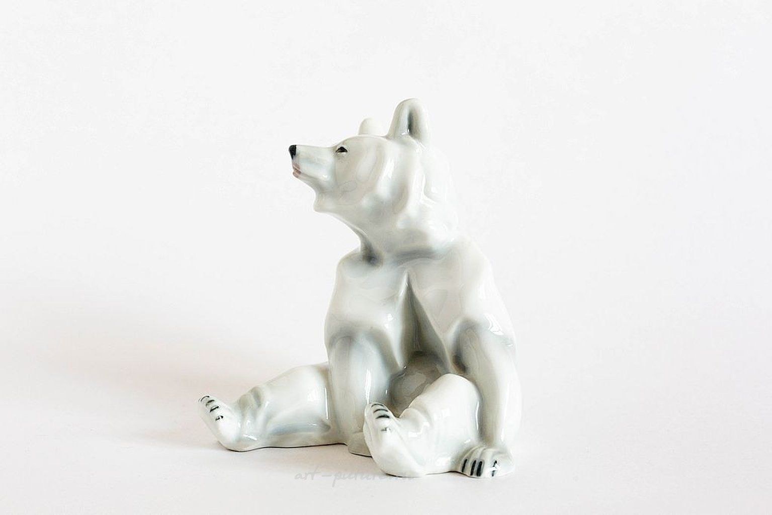 Сидящий медведь, застигнутый в момент, когда он, словно пытаясь приловчиться к этому мгновению, приподнял свою голову, так и не смог полностью расправить свои могучие лапы. Эта статуэтка, изящно создающая иллюзию активности, становится жертвой своей статичности, теряем в ней ту искреннюю живость, какую мы ожидали увидеть. Она, на первый взгляд, взывает к нам, как ни парадоксально, открытой пастью, словно призывая к какому-то звуку или движению, однако этот призыв теряется в пространстве, оставаясь невидимым и невостребованным.