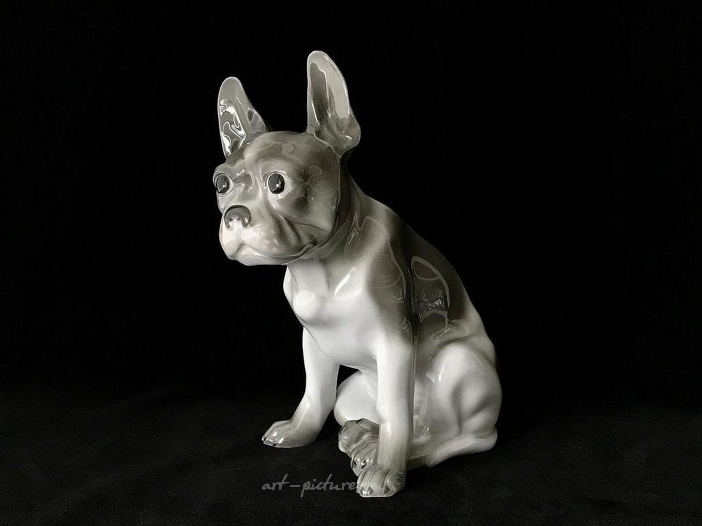 На изображении, которое словно волшебно распахивает внутренние просторы моего воображения, я вижу восхитительную фарфоровую статуэтку, изящно изображающую сидящего французского бульдога. Каждый элемент этой статуэтки словно погружает меня в мир стиля и элегантности, приглашая внимательно рассмотреть каждую деталь, каждую черту, которая делает её столь уникальной и притягательной. Произведённая славной компанией Hutschenreuther в Германии в период между 1925 и 1929 годами, эта статуэтка становится не просто предметом, но настоящей сокровищницей, в которой запечатлено искусство фарфорового мастерства.