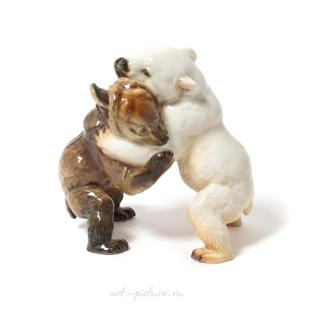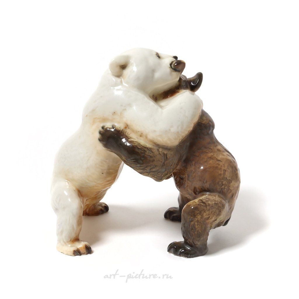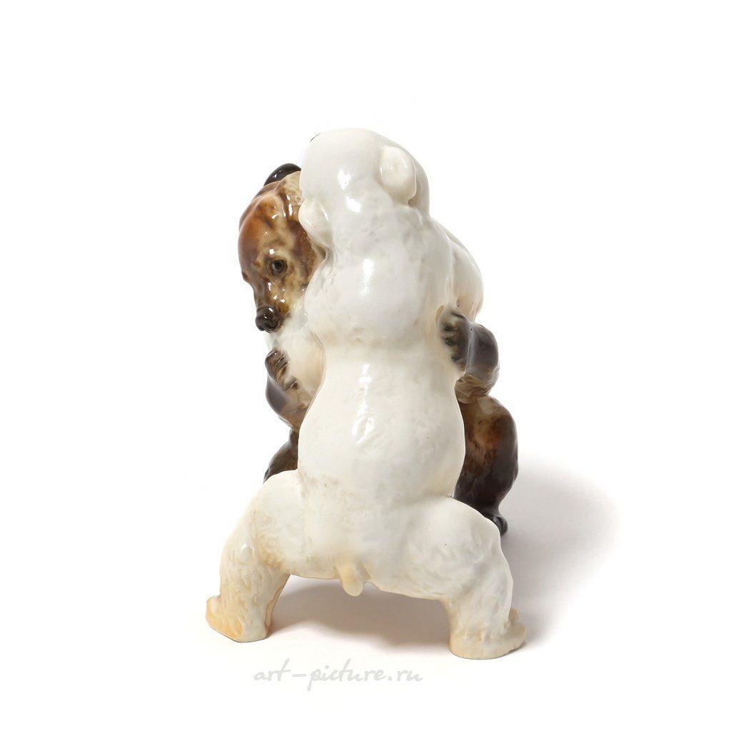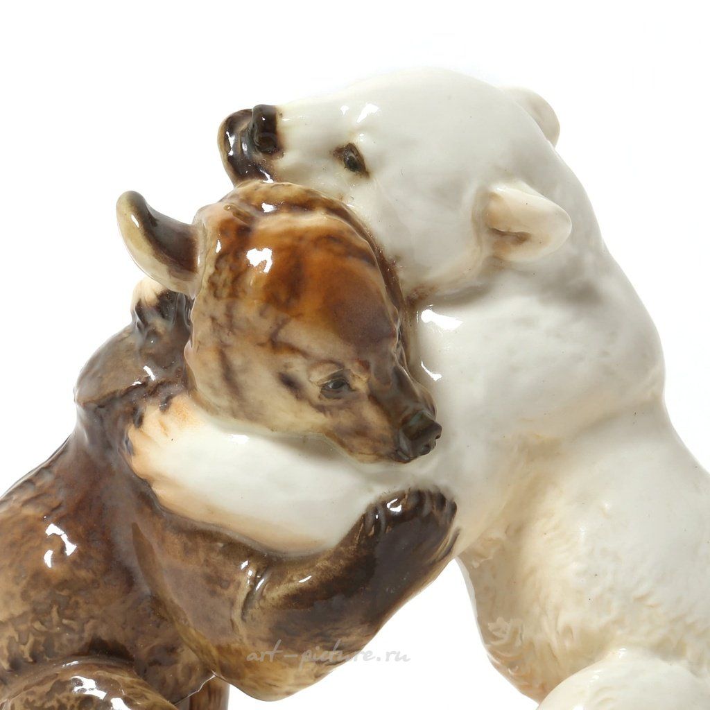 Фарфоровая фигура (статуэтка) "Пара играющих медвежат". Ручная подглазурная роспись. Германия, Porzellan Manufaktur Allach, 1935-1945 гг. Скульптор: Theodor Kärner. Номер модели - 6 Высота - 12 см. Без сколов, повреждений и без реставраций. Porcelain figurine "Bear group". Hand-painted underglaz. Germany, Porzellan Manufaktur Allach, the 1935-1945. Sculptor: Theodor Kärner. Model - 6. Height - 12 cm. Without chips, damage and restorations. Дикие животные Медведь
