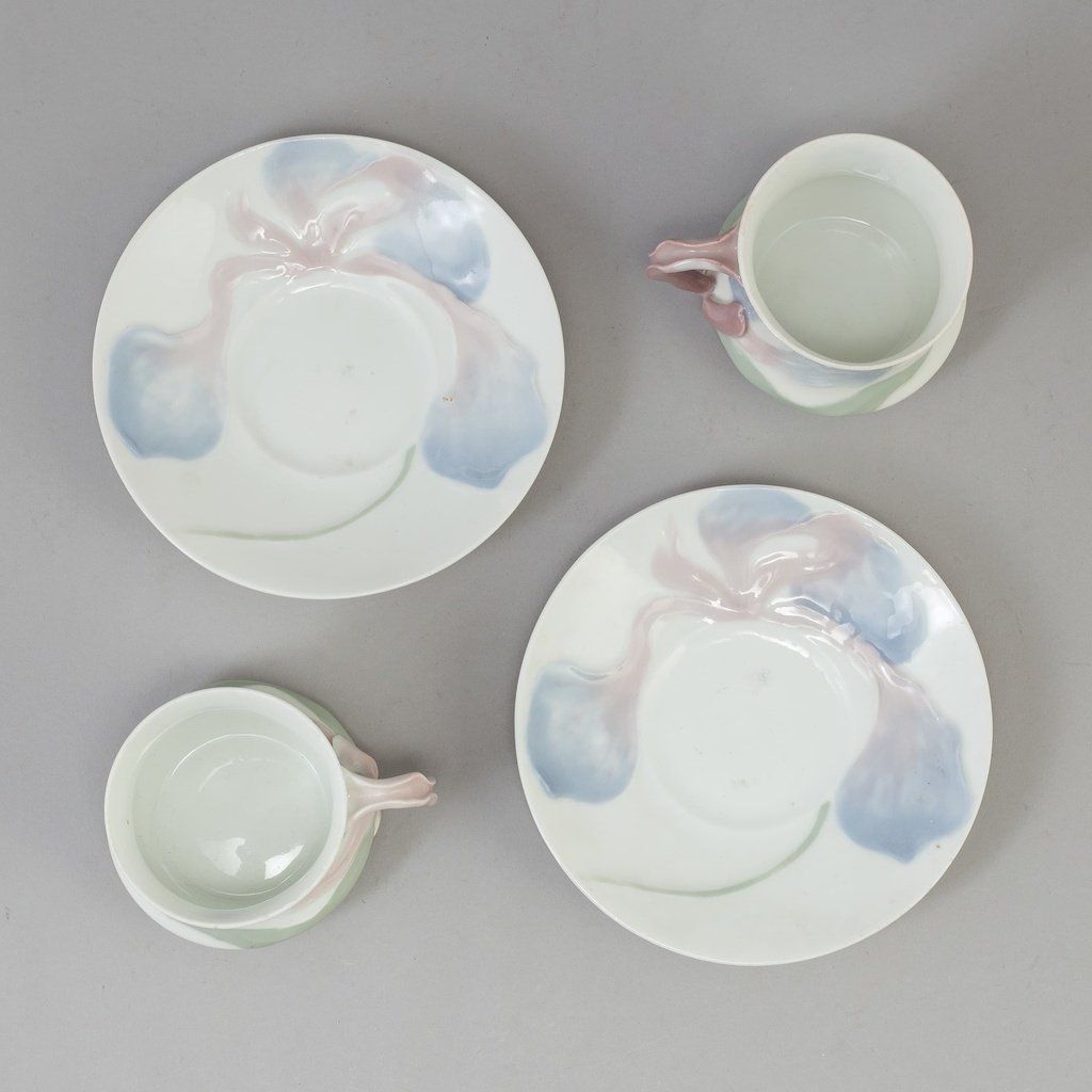 Швеция, Rörstrand, автор Alf Wallander (годы жизни: 1862-1914 гг). Серия «Ирис» была разработана Альфом Уолландером в 1897 году для Художественной выставки в Стокгольме. Чашки изготовлены и расписаны руками на одной из самых известных фарфоровых фабрик, прославившейся в период Ар нуво своими роскошными, зачастую уникальными фарфоровыми изделиями. The set is made and painted by hands at one of the most famous porcelain factories. Which became famous during the Art Nouveau period for its fabulous unique porcelain products.