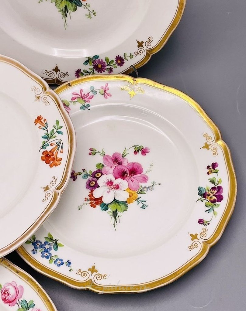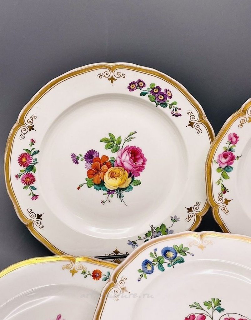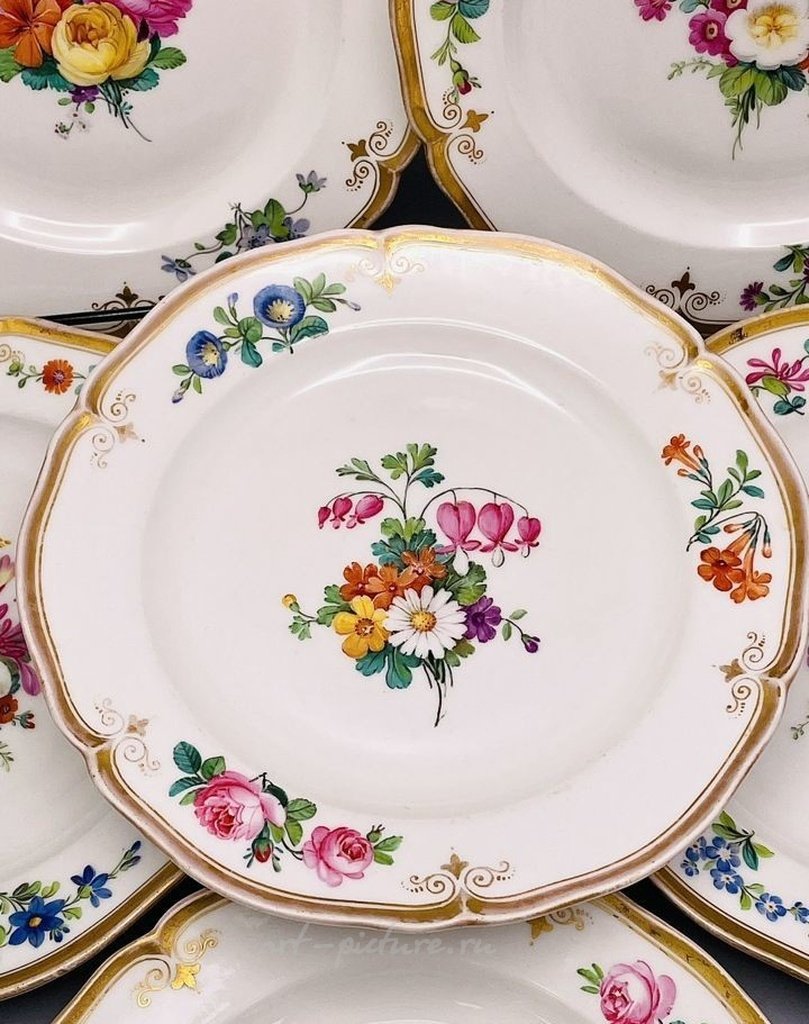 Набор тарелок KPM производство Германии, произведены до 1870 года!!! (153 года!!) Фарфор, ручная роспись, золочение. Комплект 6шт. размер: диаметр 21,5см., присутствуют следы бытования, на одной незначительные мелкие заводские дефекты, потертости золота.