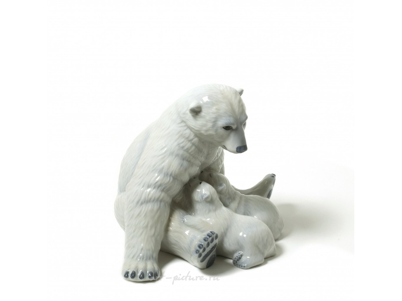 Фарфоровая фигура (статуэтка) "Белая полярная медведица с двумя медвежатами". Ручная подглазурная роспись.