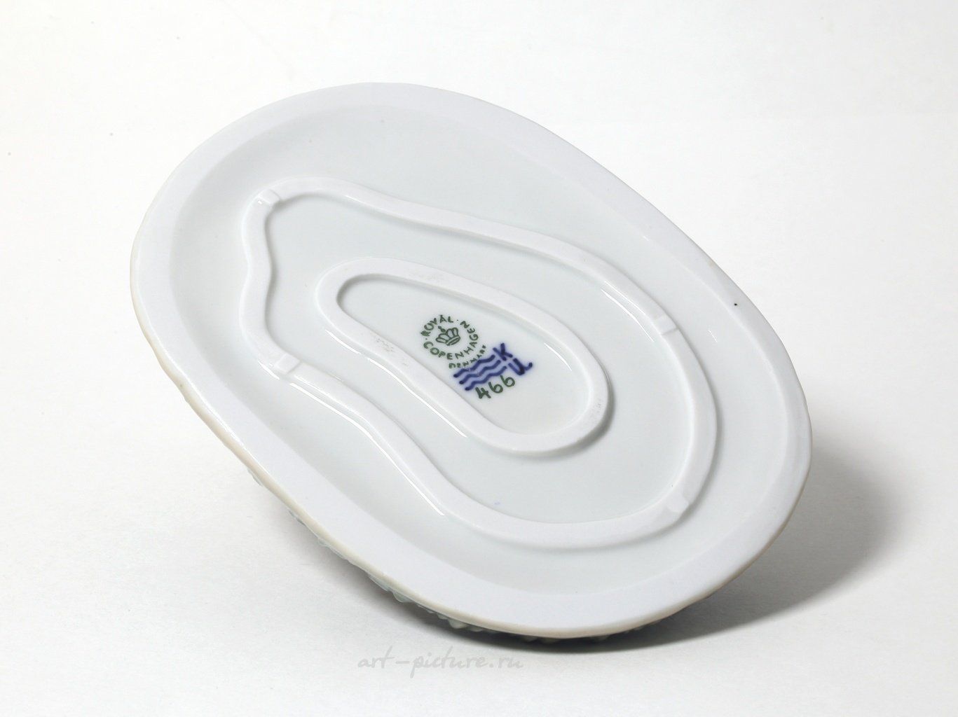 Дания, г. Копенгаген, Royal Copenhagen, 1999-2004 гг. Фигура произведена после объединения фабрик Royal Copenhagen и Bing & Grondahl (1985-1989). Фигуры после объединения фабрик выпускались короткое время, расписаны существенно качественнее, чем аналогичные модели 50-80 годов. Клеймо производителя. Номер модели - 466. Инициалы художника, расписавшего статуэтку.