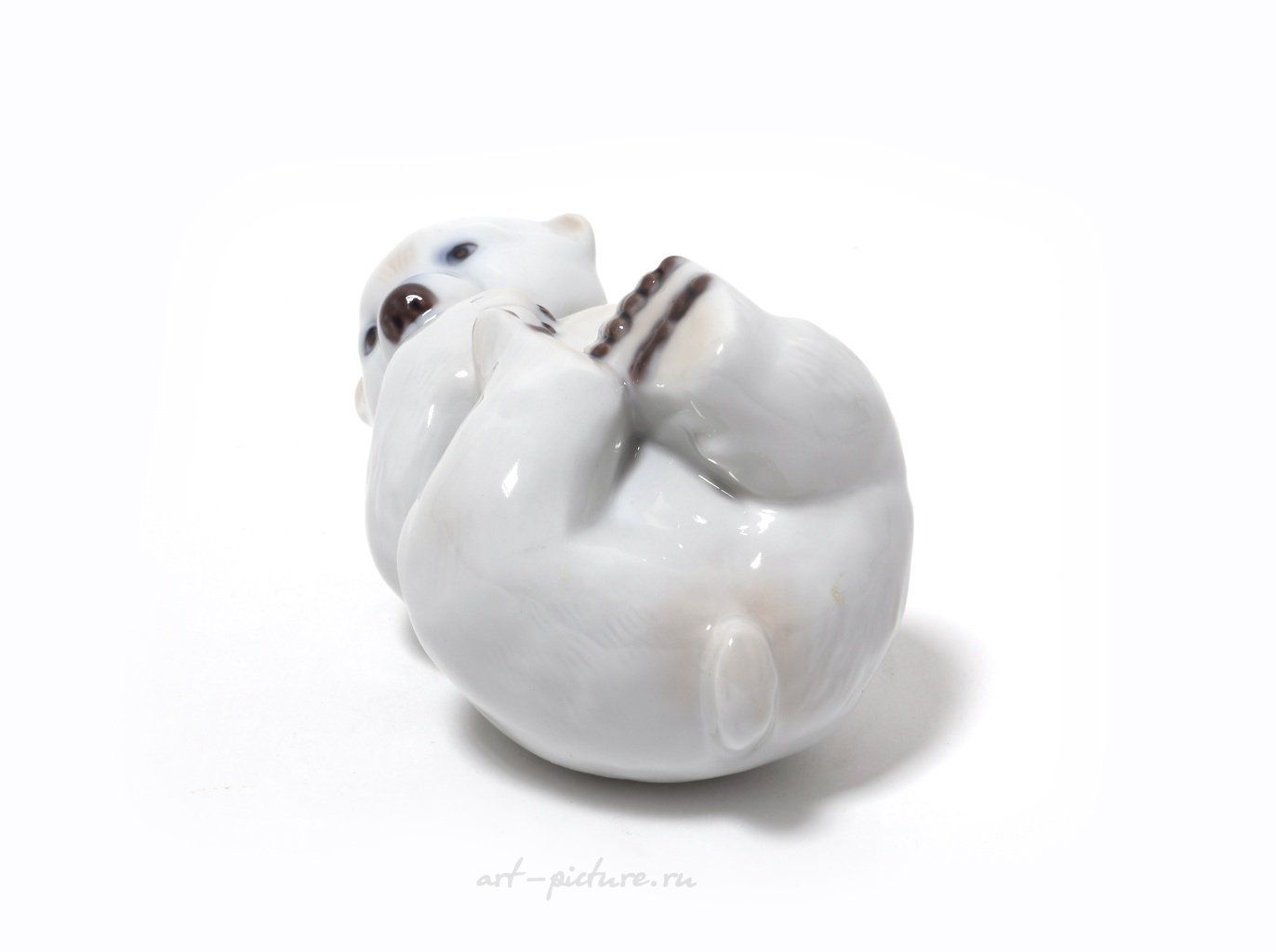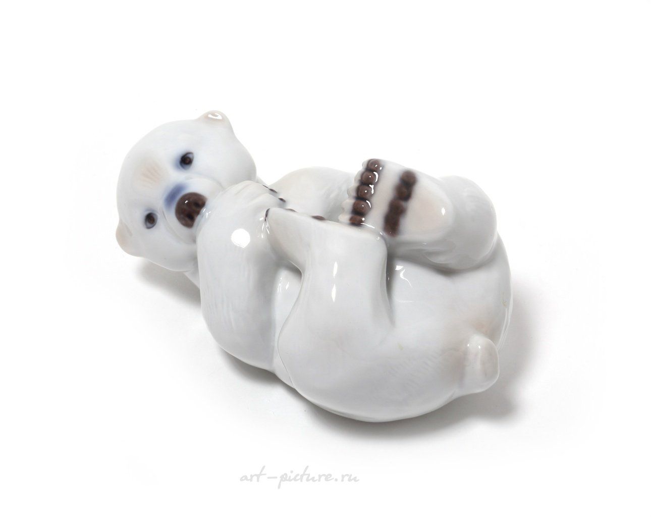 Porcelain figurine "Polar white bear cub lying on back".