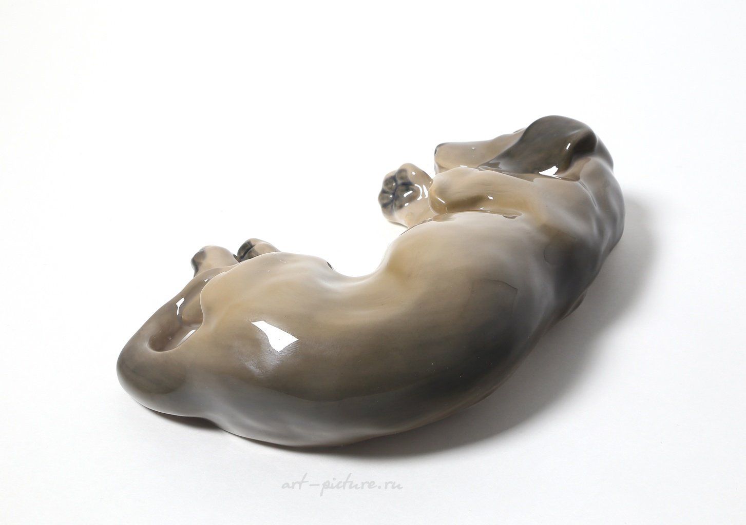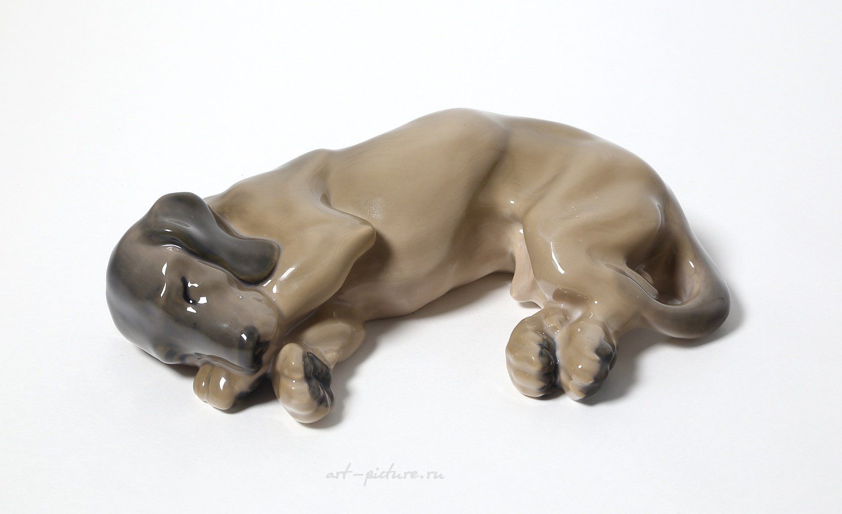 Статуэтка первого сорта. Без сколов, повреждений и без реставраций. На щеке небольшая рельефная точка от лопнувшего пузырька глазури. ================================ Porcelain figurine "Dachshund asleep". Hand-painted underglaze.