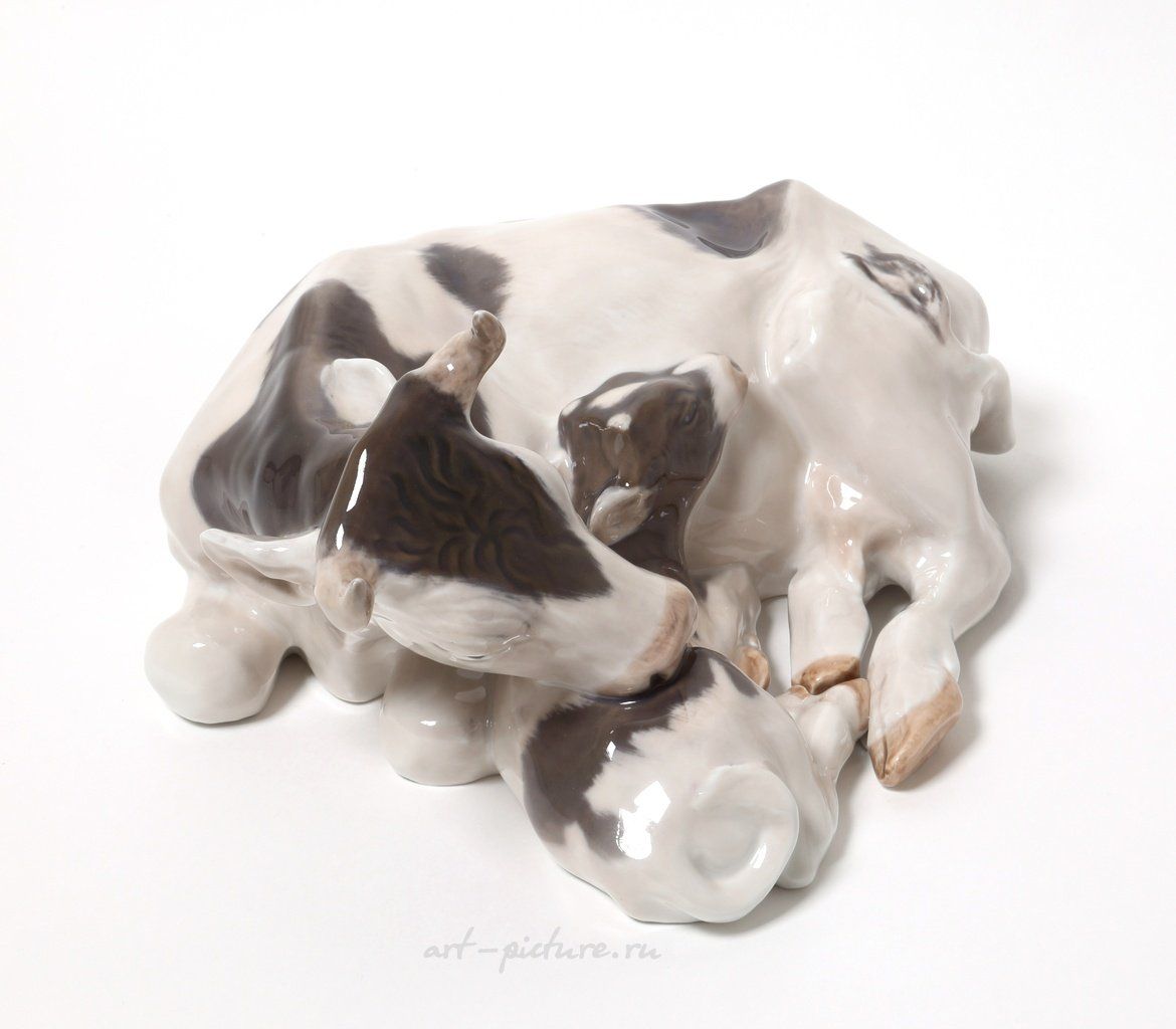 Porcelain figurine "Cow with calf". Hand-painted underglaz.