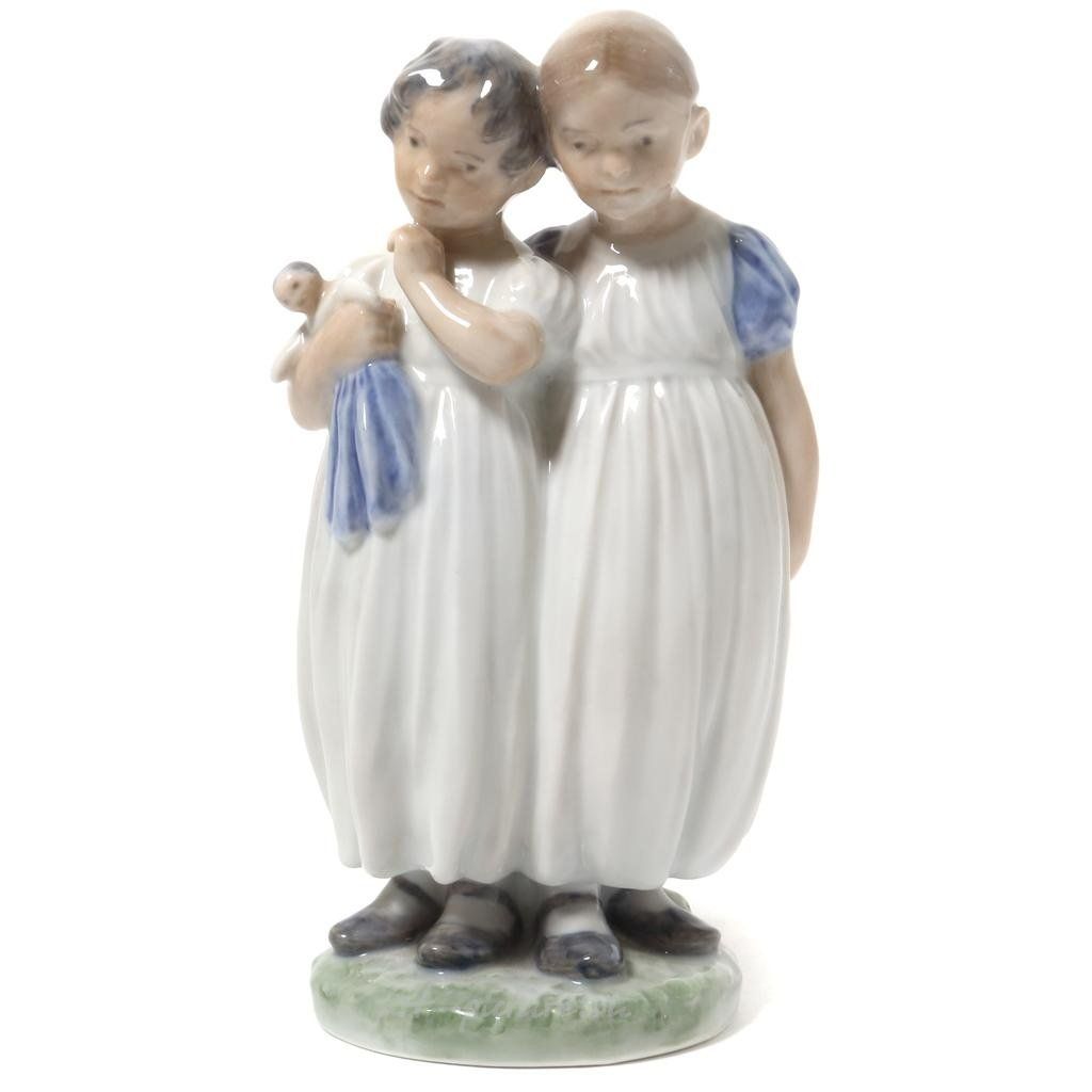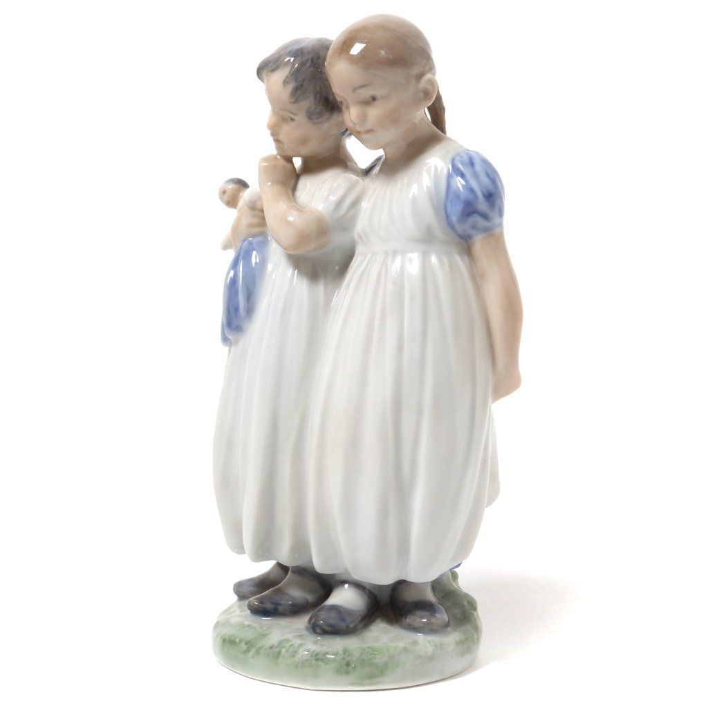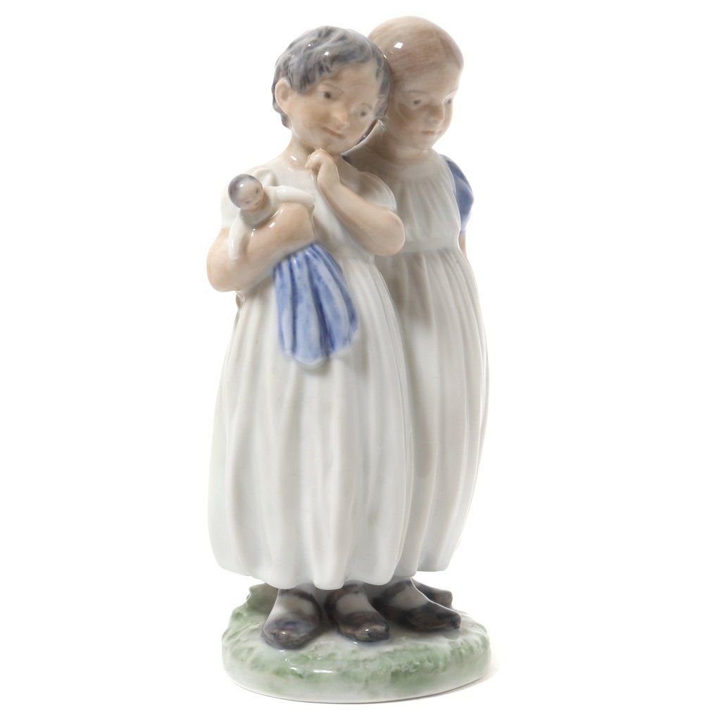 Porcelain figurine "Girls with doll". Hand-painted underglaz.