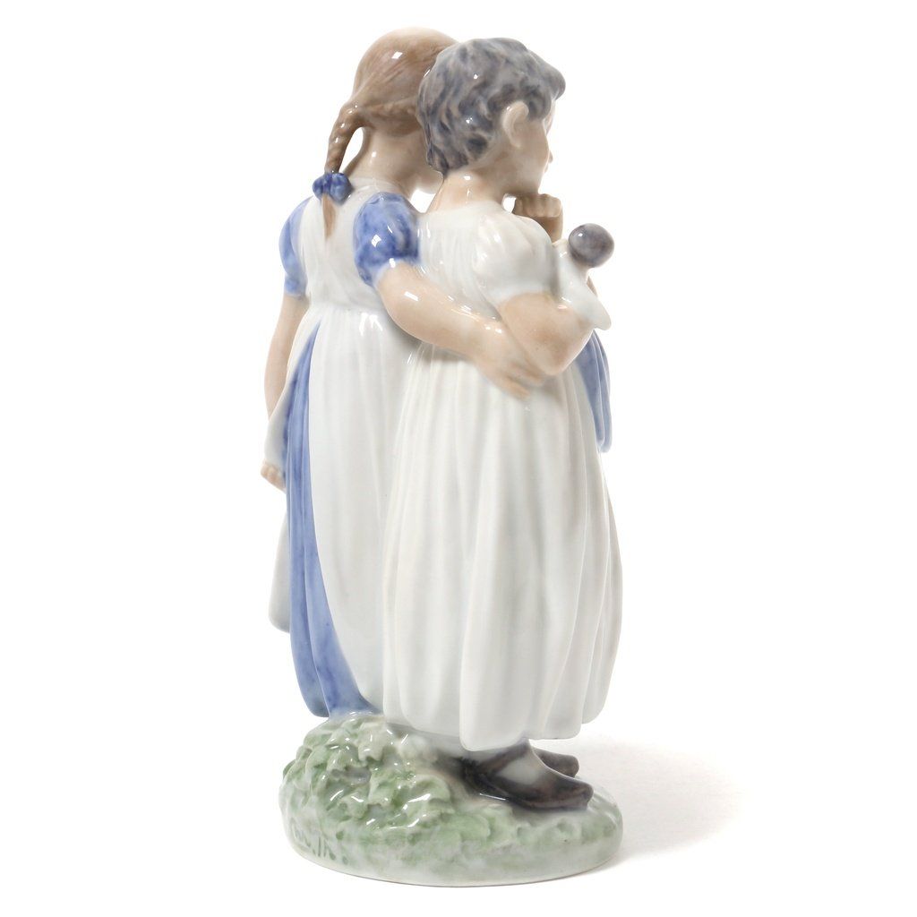 Фарфоровая фигура (статуэтка) "Девочки с куклой". Ручная подглазурная роспись.