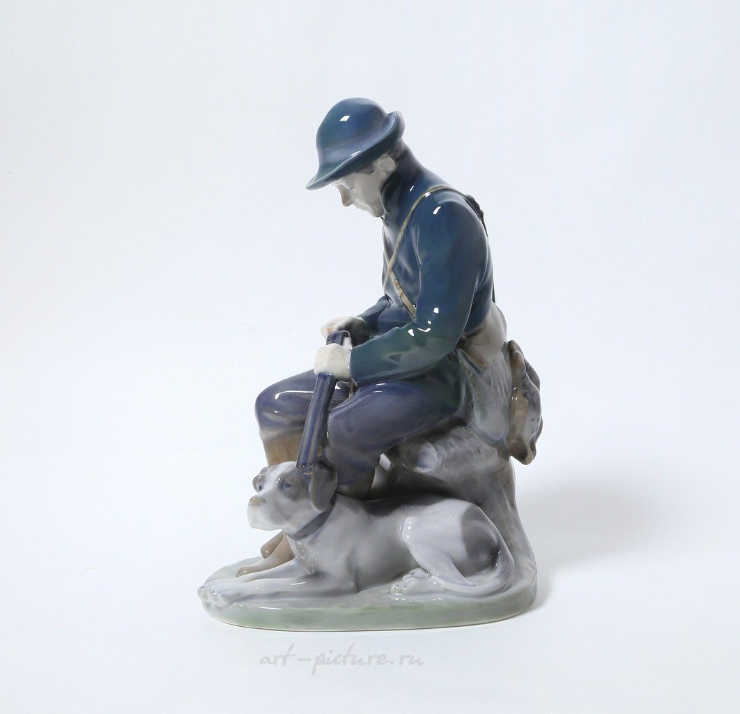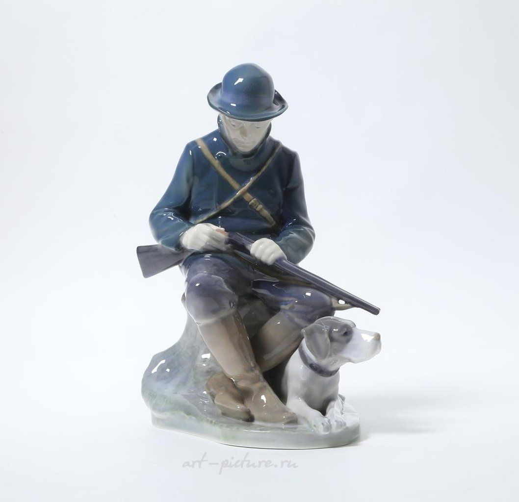 Фарфоровая статуэтка "Охотник с собакой". Ручная подглазурная роспись.