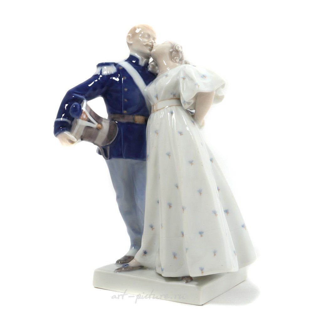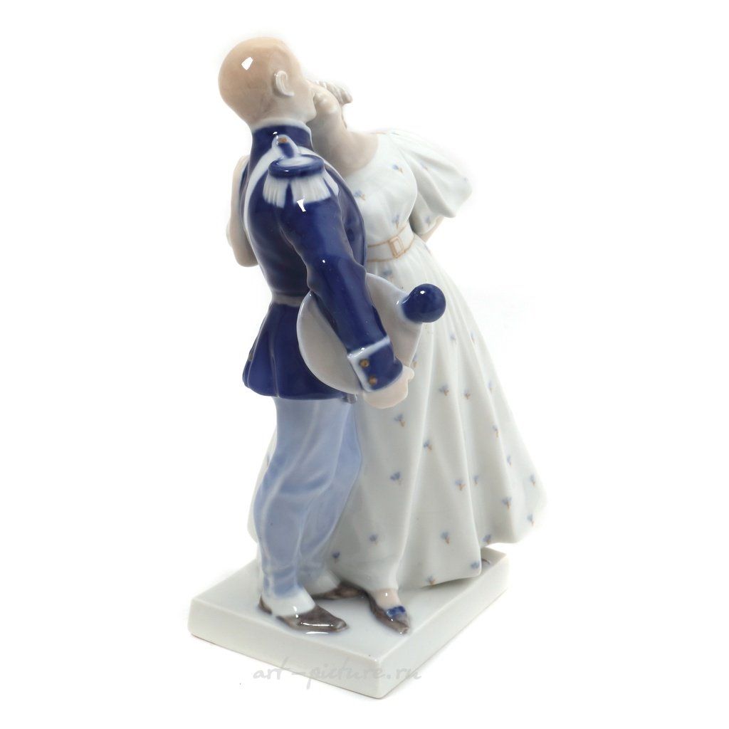 Фарфоровая фигура (статуэтка) "Солдат и принцесса". По мотивам сказки Х.К. Андерсена "Огниво". Ручная подглазурная роспись.