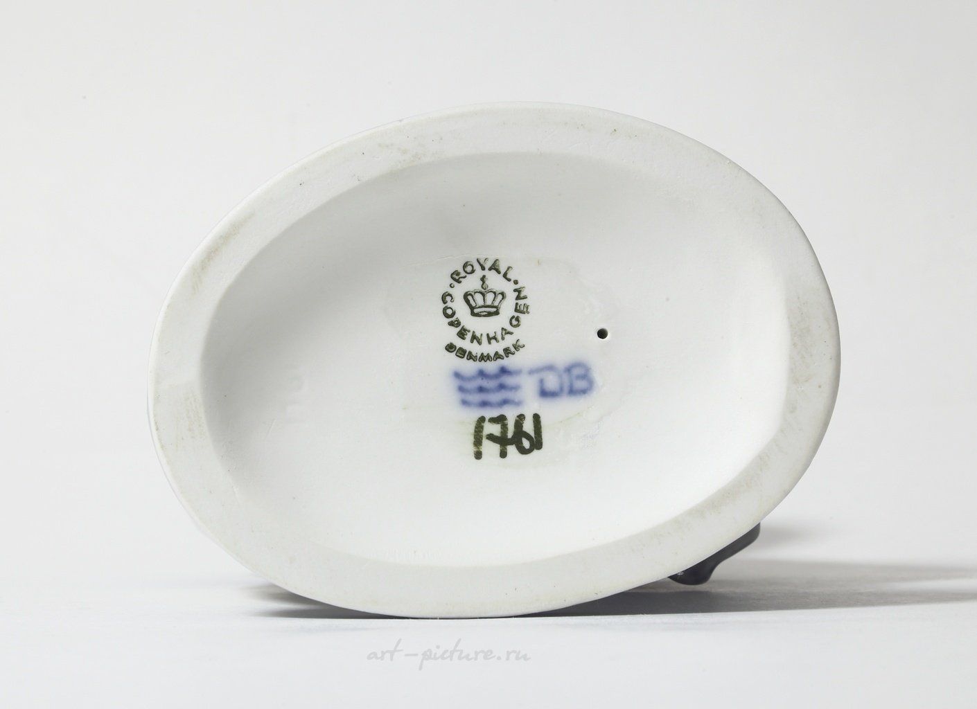Дания, г. Копенгаген, Royal Copenhagen, 1975-1979. Скульптор: Chr. Thomsen. Клеймо производителя. Номер модели - 1761. Инициалы художника, расписавшего статуэтку.