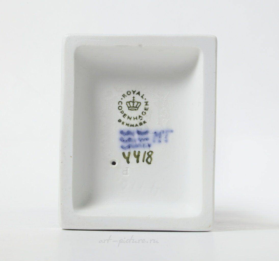 Дания, г. Копенгаген, Royal Copenhagen, 1968 год. Скульптор: Johannes Hedegaard. Клеймо производителя. Номер модели - 4418. Инициалы художника, расписавшего статуэтку.