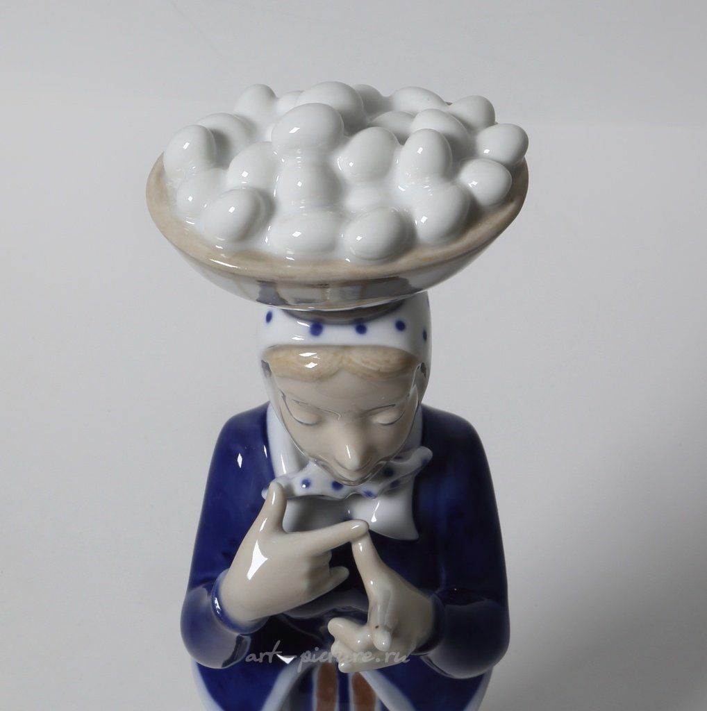 Porcelain figurine "Woman with eggs". Hand-painted underglaz.