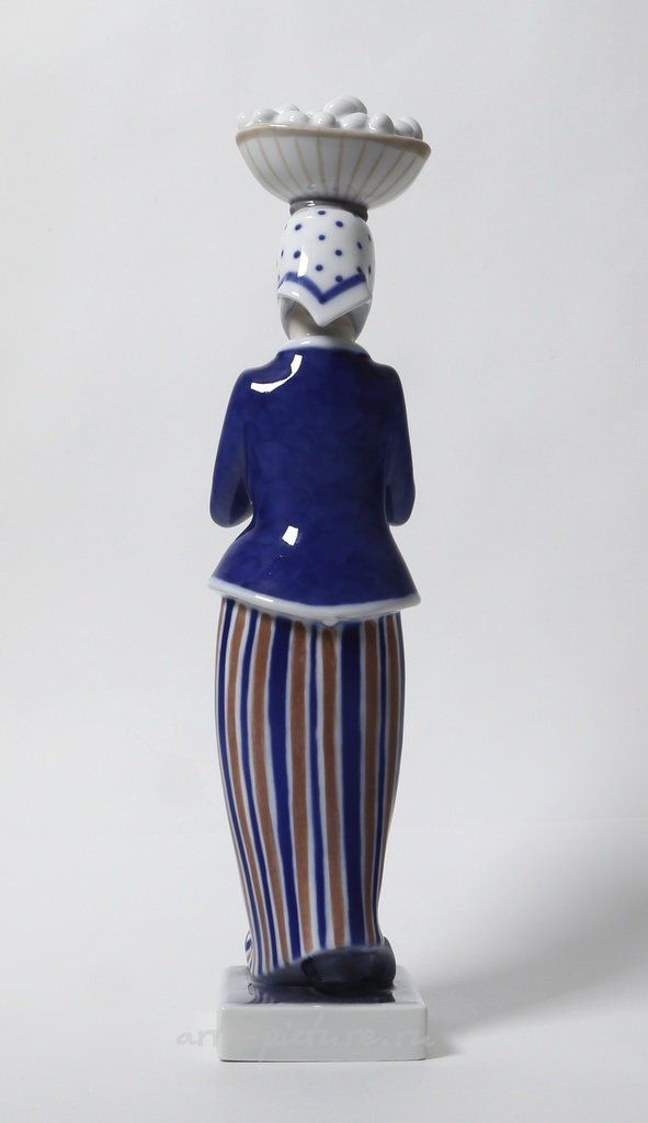 Фарфоровая статуэтка "Женщина с корзиной яиц на голове". Ручная подглазурная роспись.