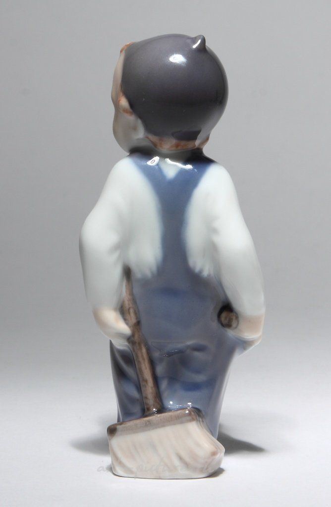 Это фарфоровая статуэтка мальчика с щеткой, сделанная знаменитой данием Royal Copenhagen. Я всегда находил работы этой фабрики восхитительными, особенно их внимание к деталям. Посмотрите на изящество линий и на удивительную роспись – это действительно показывает мастерство мастеров. Как человек, который часто изучает ювелирное и декоративное искусство, я всегда восхищаюсь уровнем детализации, который достигается в таких произведениях.