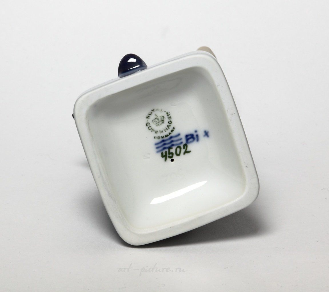 Дания, г. Копенгаген, Royal Copenhagen, 1966 год. Скульптор: J. M. Nissen. Клеймо производителя. Номер модели - 4502. Инициалы художника, расписавшего статуэтку.