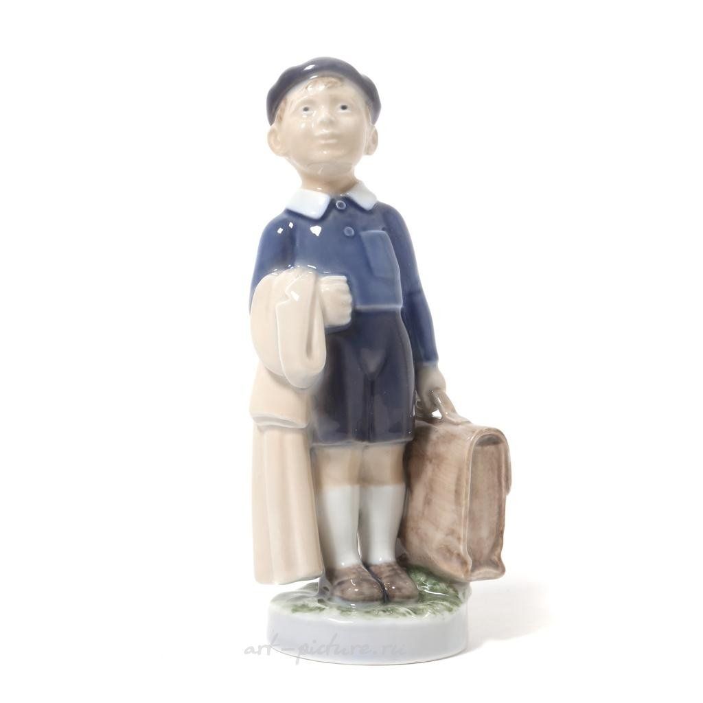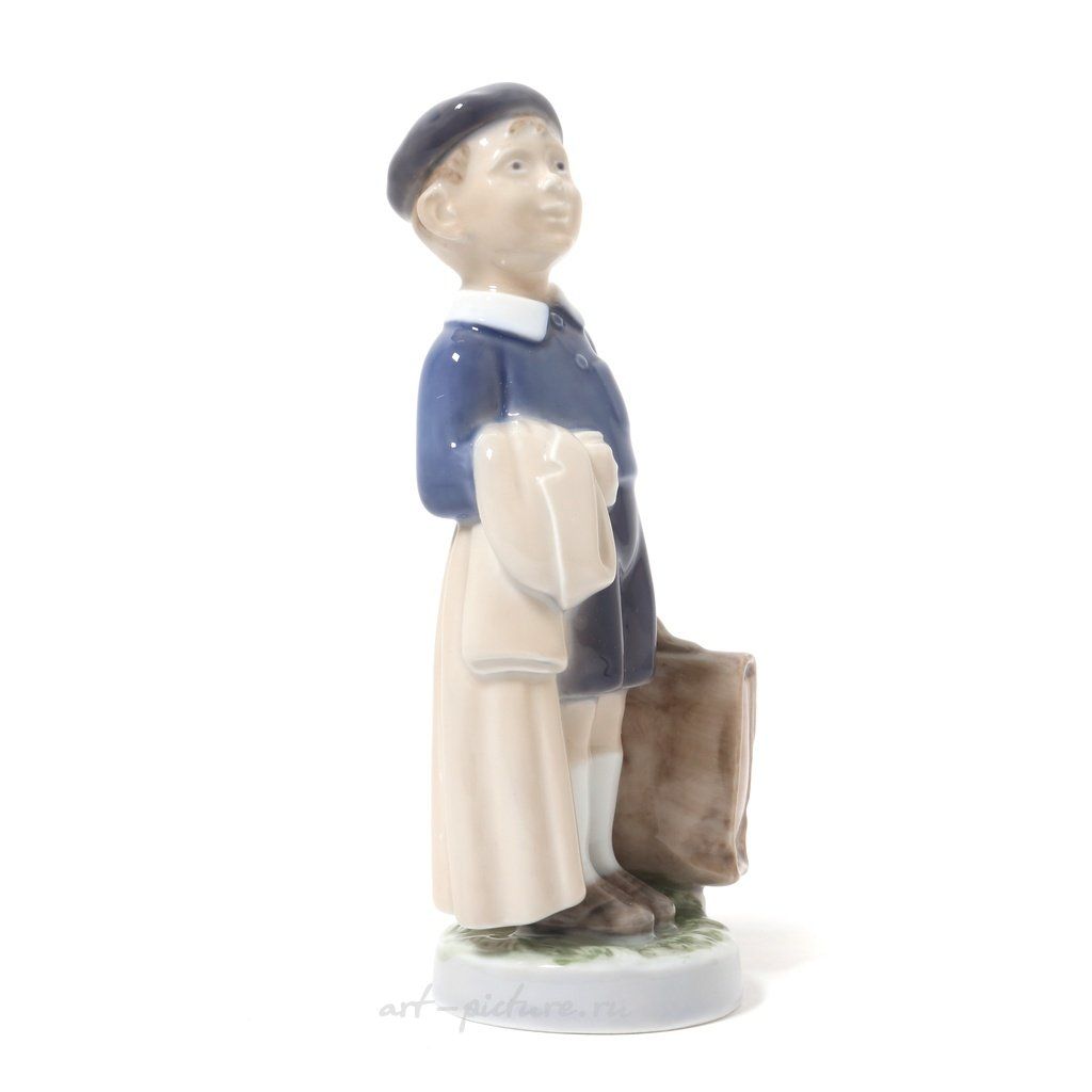 Фарфоровая фигура из серии Месяцы года "Июнь - мальчик с портфелем". Ручная подглазурная роспись.