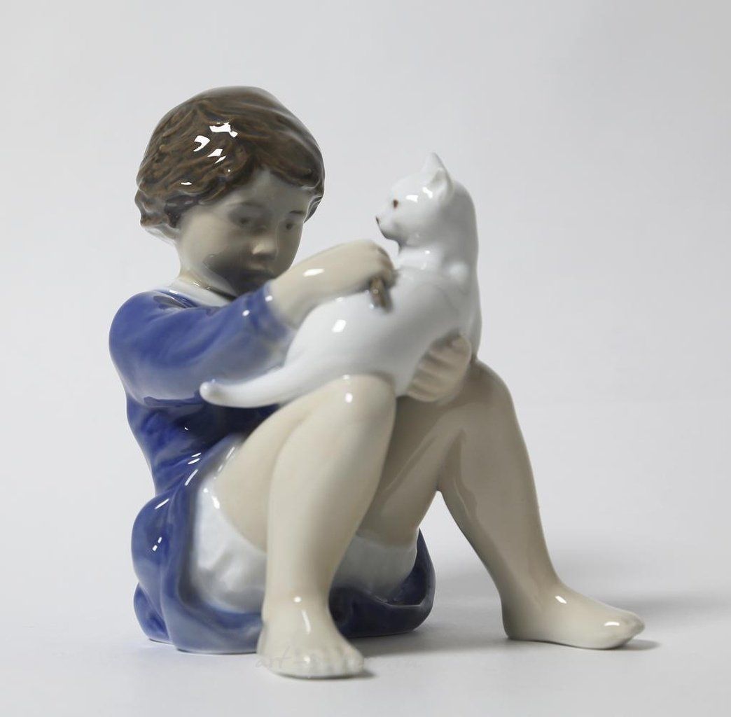 Фарфоровая статуэтка "Девочка с кошкой". Ручная подглазурная роспись.