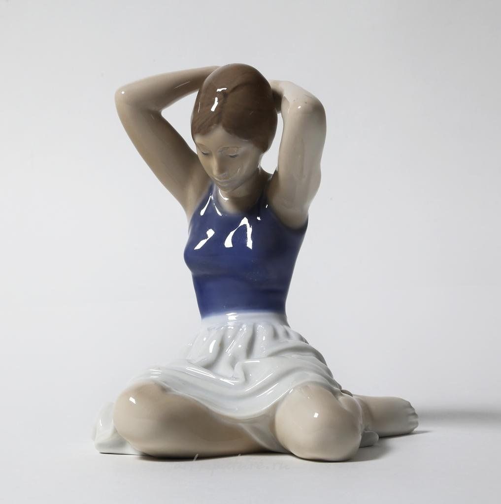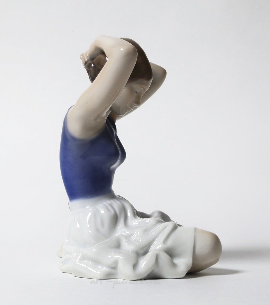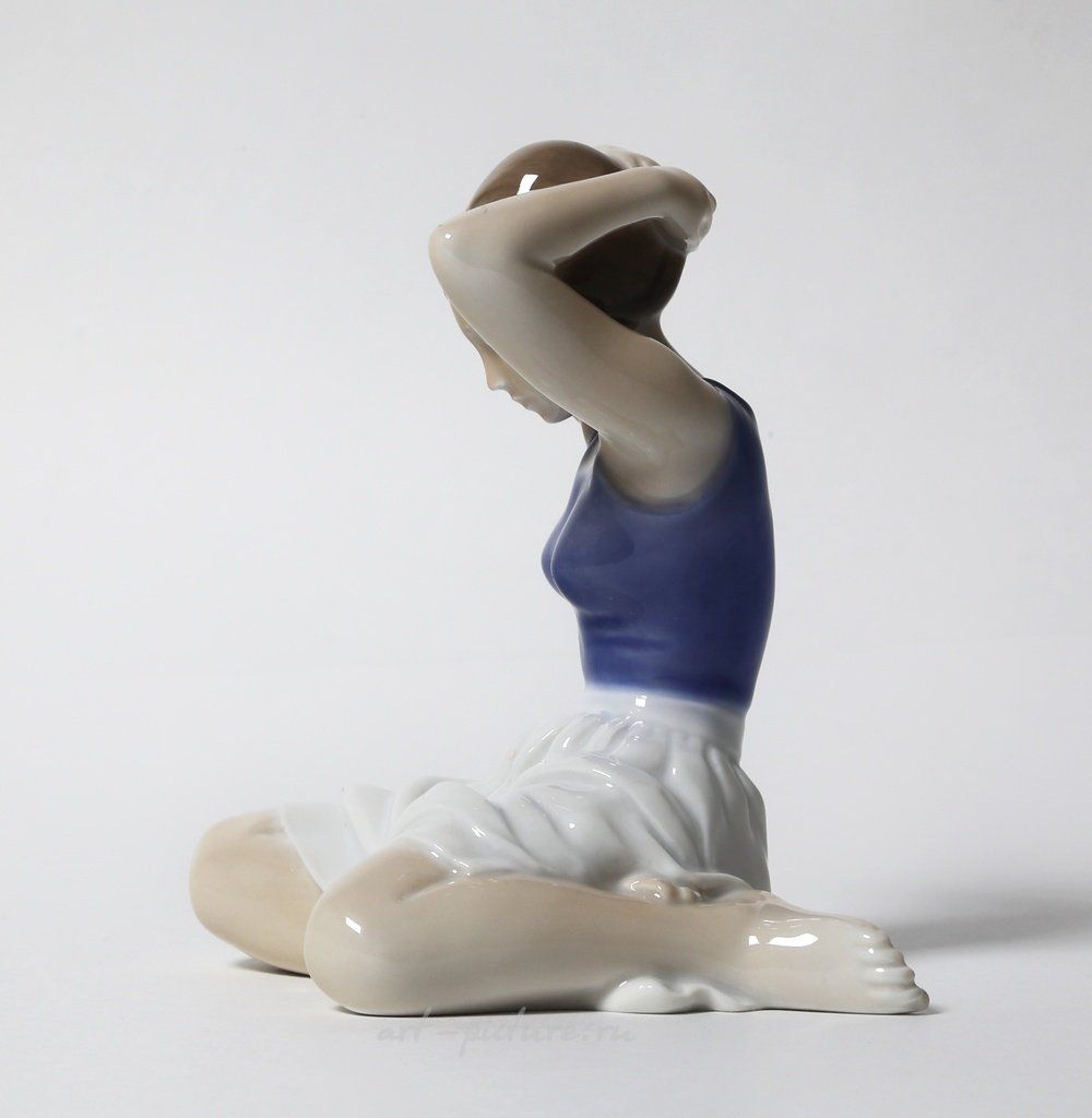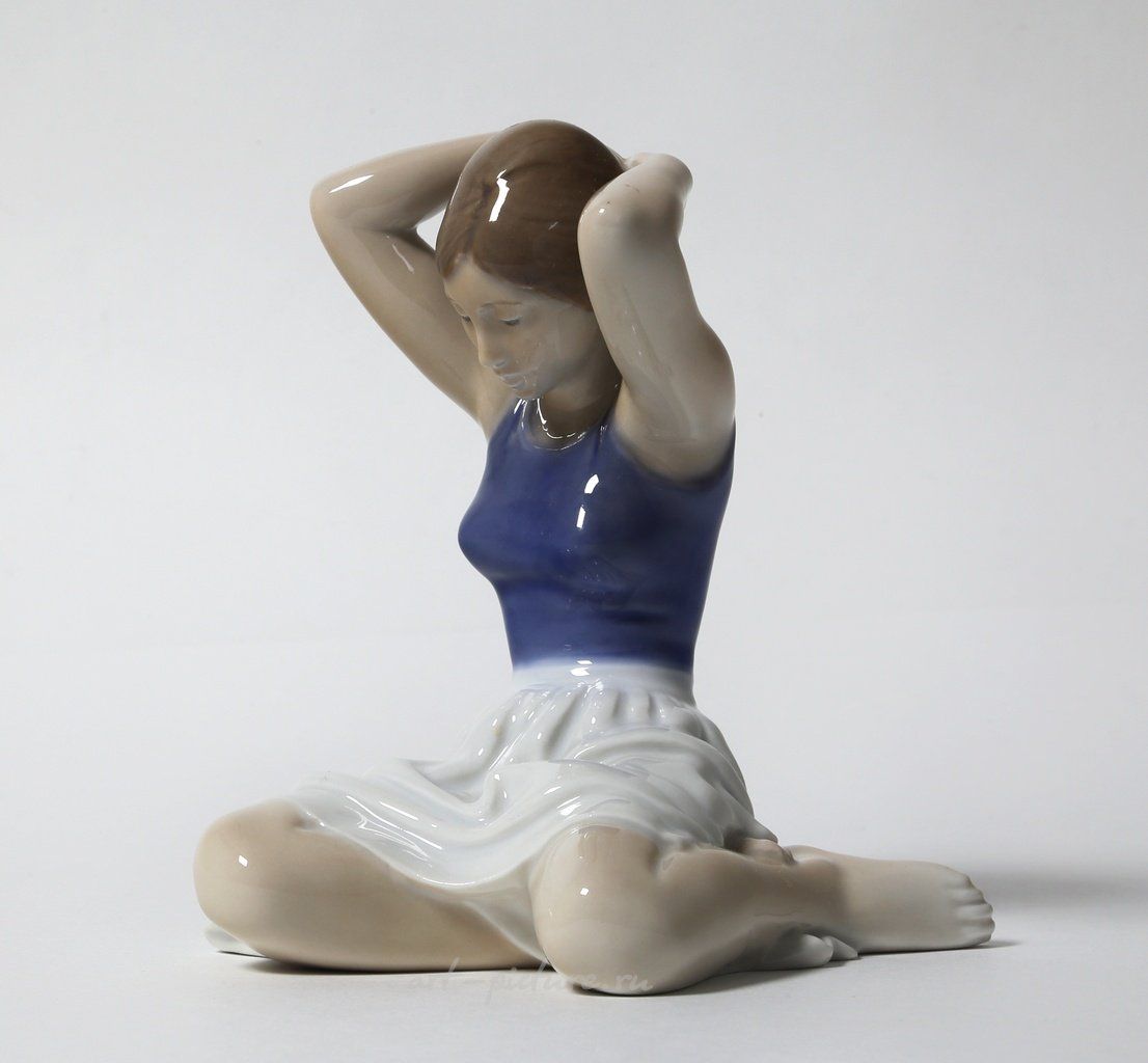 Я просто в восторге от этой статуэтки! Это действительно потрясающая работа! На ней изображена девочка, которая, кажется, вот-вот поправит свои волосы, что добавляет какой-то артистичности этой сцене. Она сидит скрестив ноги, а это, понимаешь, делает её образ ещё более милым и невинным. Я всегда говорю, что это не просто статуэтка, это целая история, застывшая в фарфоре.