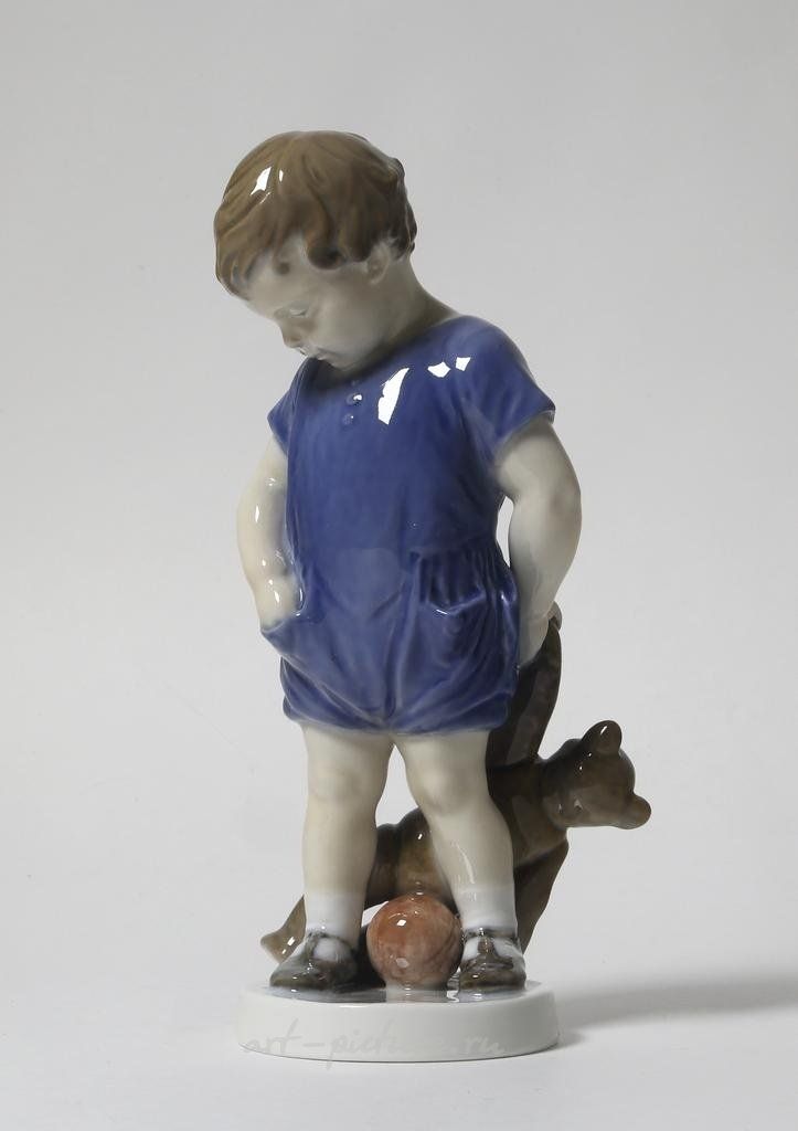 Фарфоровая статуэтка "Мальчик с мишкой". Ручная подглазурная роспись.