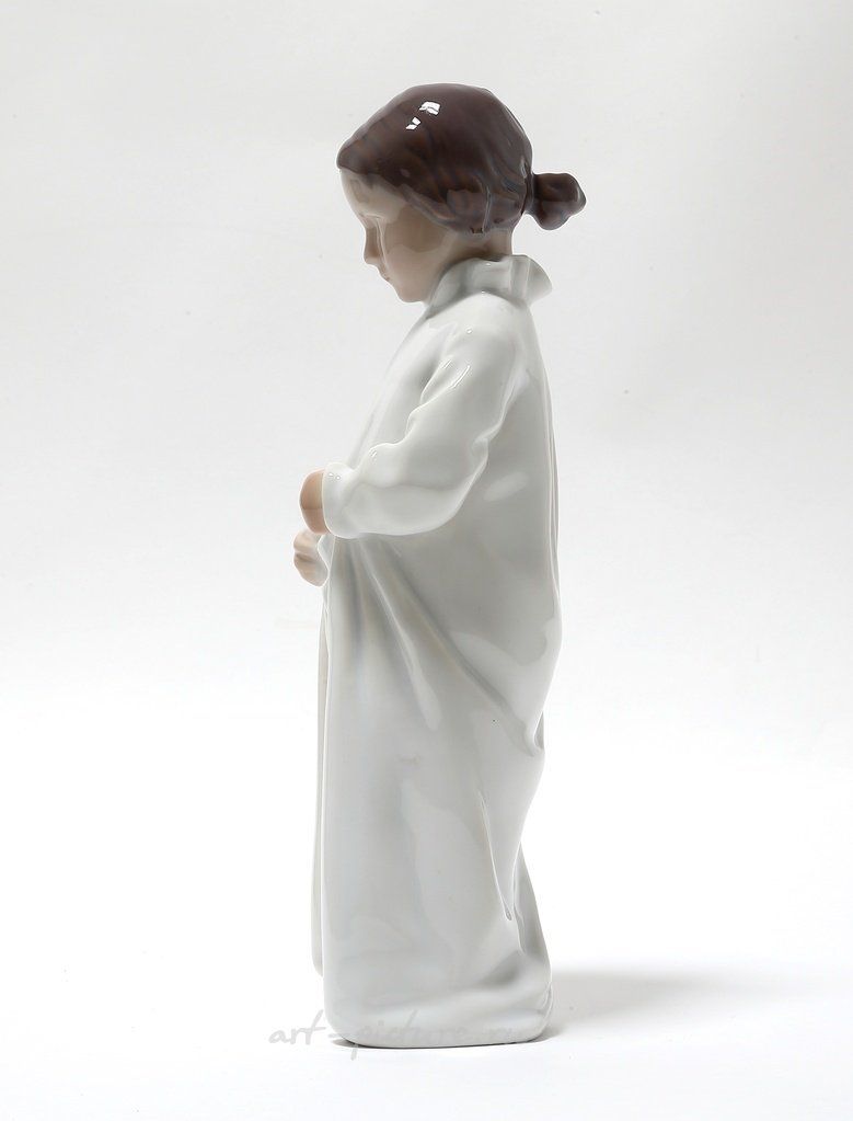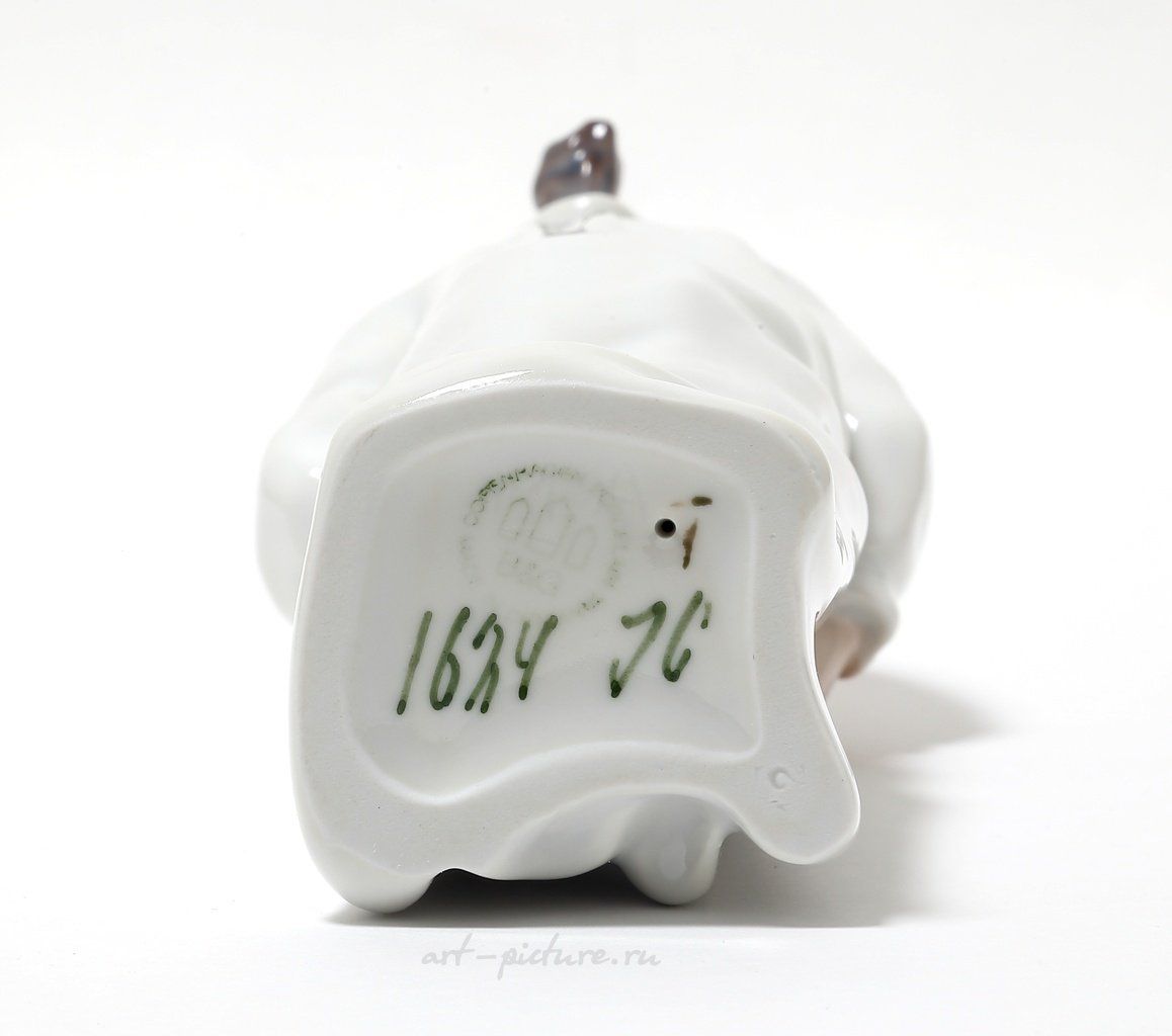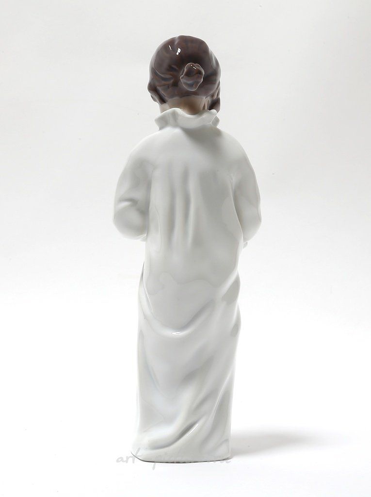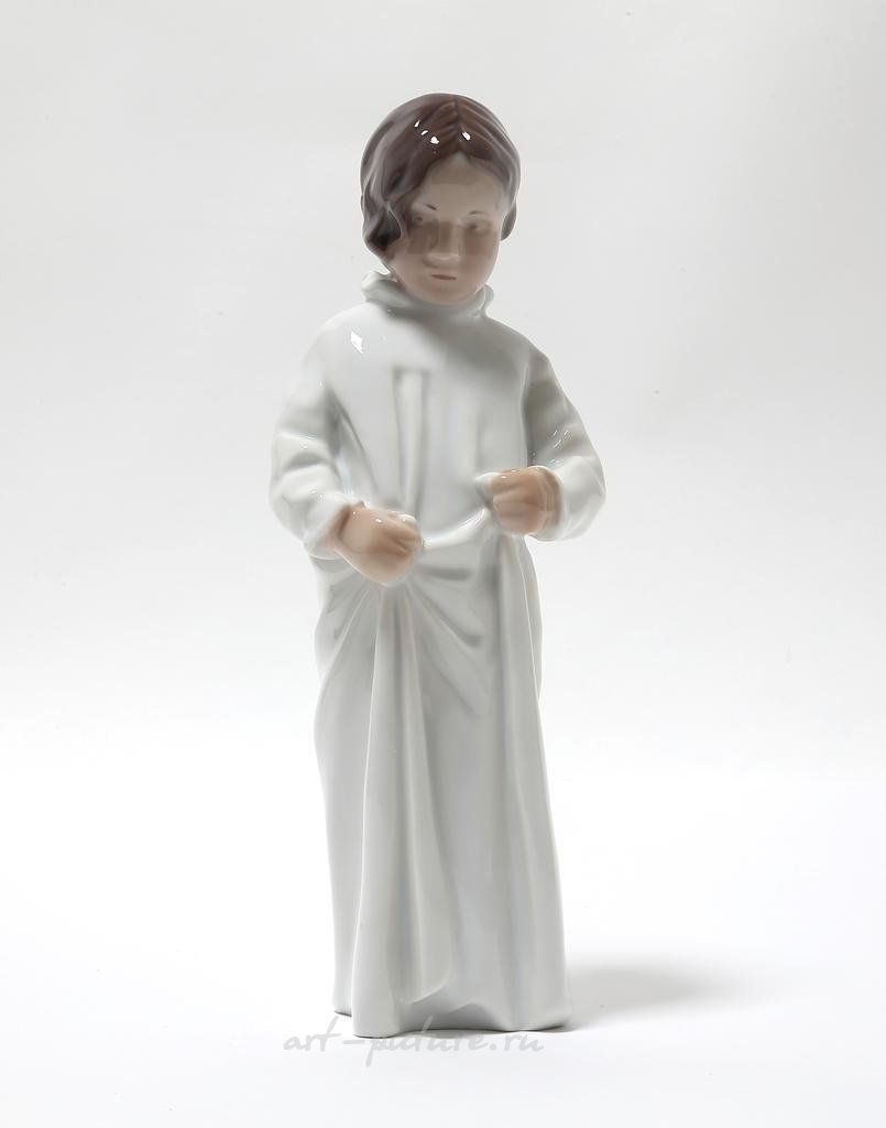 Фарфоровая статуэтка "Доброе утро". Ручная подглазурная роспись. Дания, г. Копенгаген, Bing & Grondahl. Скульптор: Dahl Jensen. Клеймо производителя: 3 towers B&G Copenhagen Porcelain Made in Denmark, 1970-1983 гг. Номер модели - 1624. Инициалы художника, расписавшего статуэтку: JC. Высота - 19,5 см. Статуэтка второго сорта. Без сколов, повреждений и без реставраций. Porcelain figurine "Good morning". Hand-painted underglaz. Denmark, Copenhagen, Bing & Grondahl. Sculptor: Dahl Jensen. Factory mark: 3 towers B&G Copenhagen Porcelain Made in Denmark, 1970-1983. Model - 1624. The initials of the artist painted this figurine: JC. Height - 19,5 cm. Figurine of the second sort. Without chips, damage and restorations. Bing & Grondahl 1624 (BG_1624).