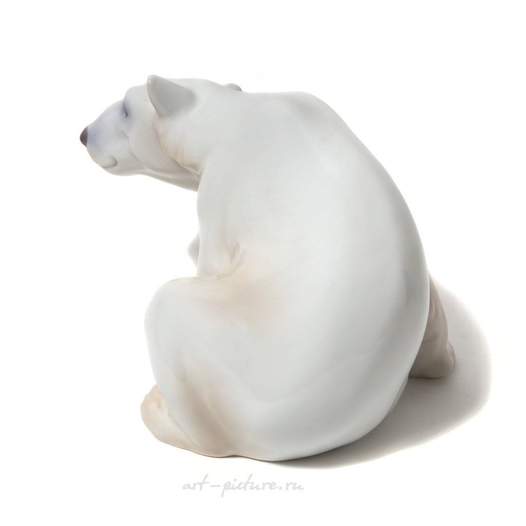 Фарфоровая фигура (статуэтка) "Сидящий полярный белый медведь. Ручная подглазурная роспись. Дания, г. Копенгаген, Bing & Grondahl. Скульптор: Jens Peter Dahl-Jensen (годы жизни: 1874-1960). Клеймо производителя: B&G Kjobenhavn Denmark. Номер модели - 1629. Инициалы художника, расписавшего статуэтку: Высота - 12 см. Статуэтка первого сорта. Без сколов, повреждений и без реставраций. Porcelain figurine "Polar white bear sitting". Hand-painted underglaz. Denmark, Copenhagen, Bing & Grondahl. Sculptor: Jens Peter Dahl-Jensen (years of life: 1874-1960). Factory mark: B&G Kjobenhavn Denmark. Model - 1629. The initials of the artist painted this figurine: Height - 12 cm. Figurine of the first sort. Without chips, damage and restorations. BG_1629 Дикие животные Медведь zzz