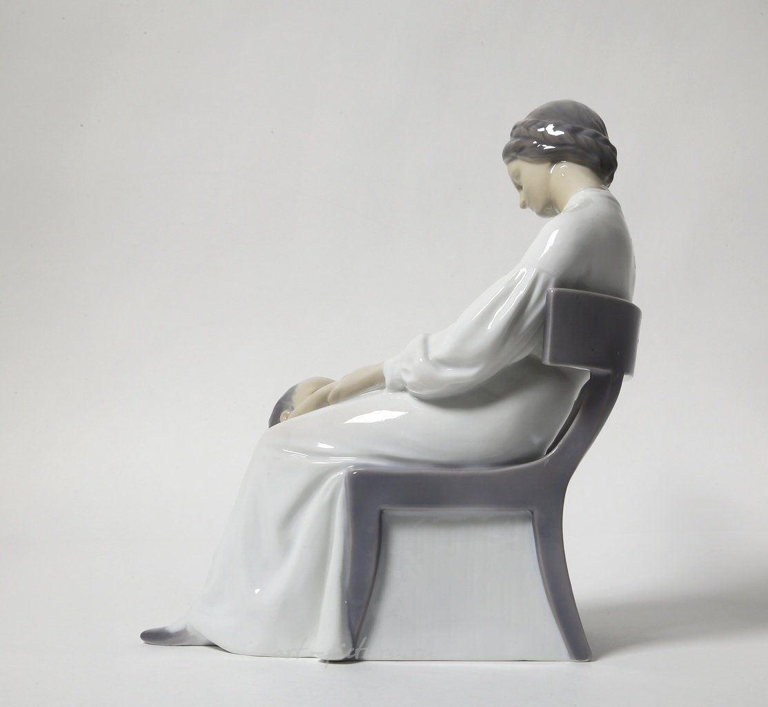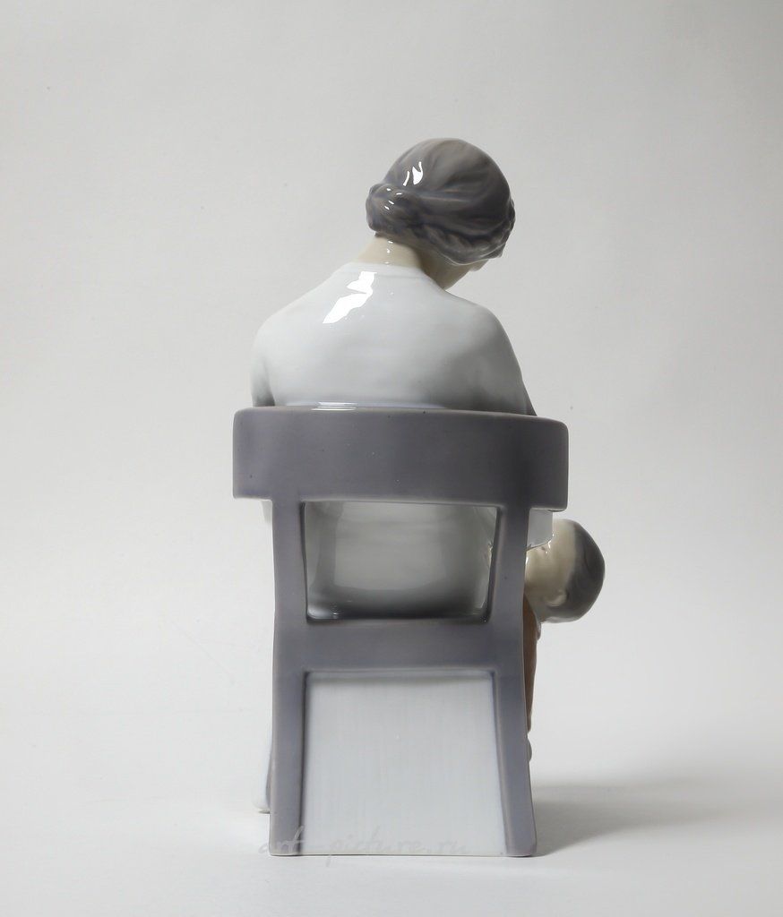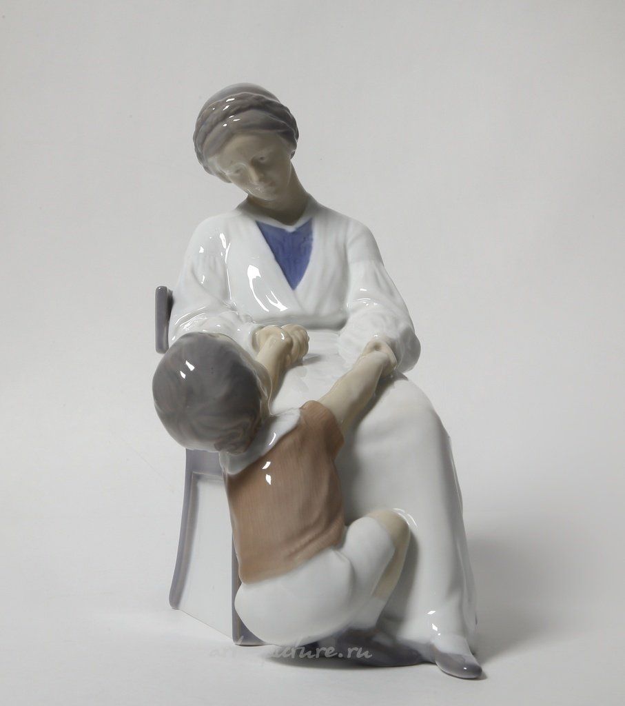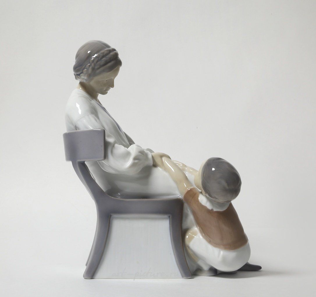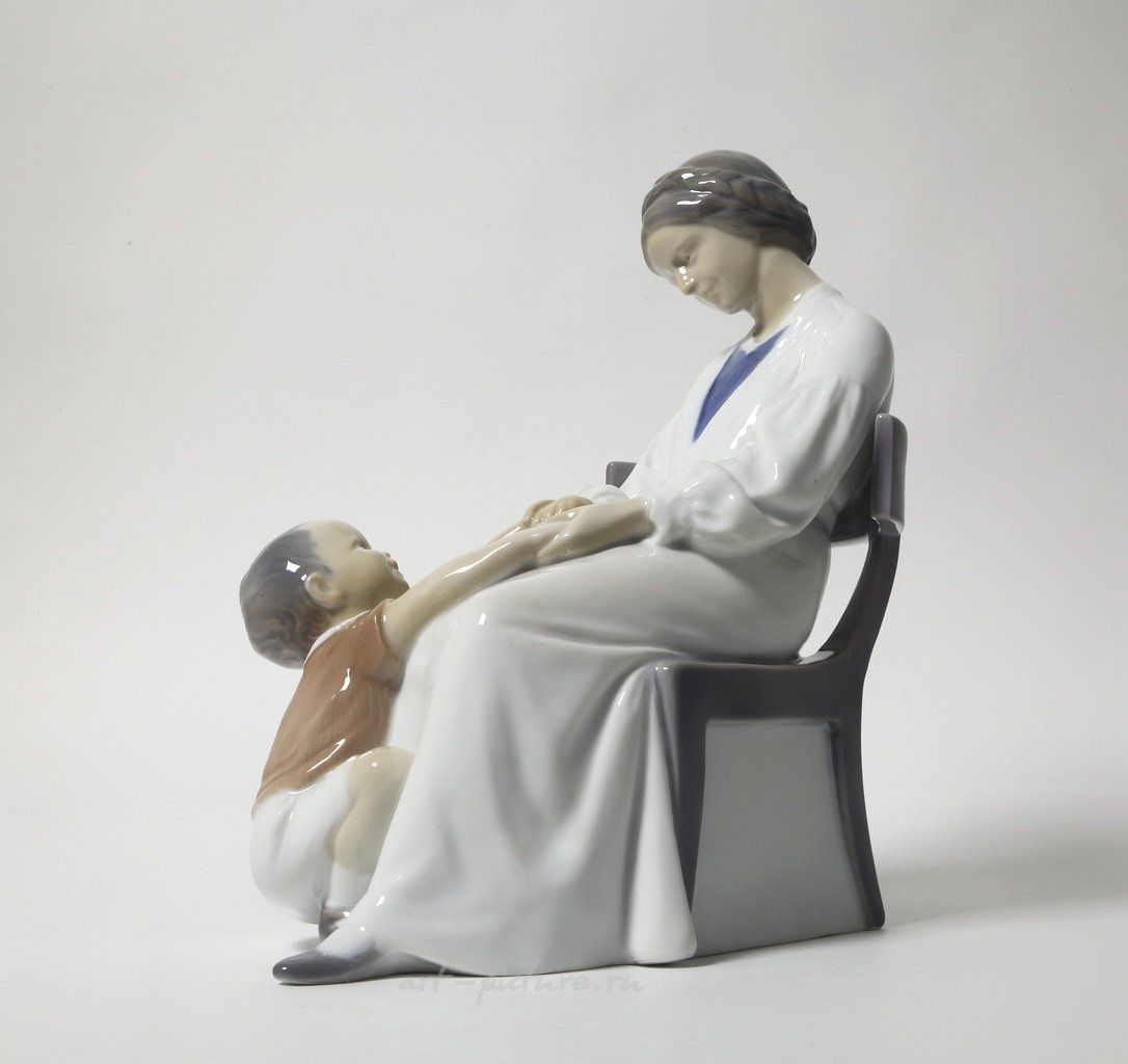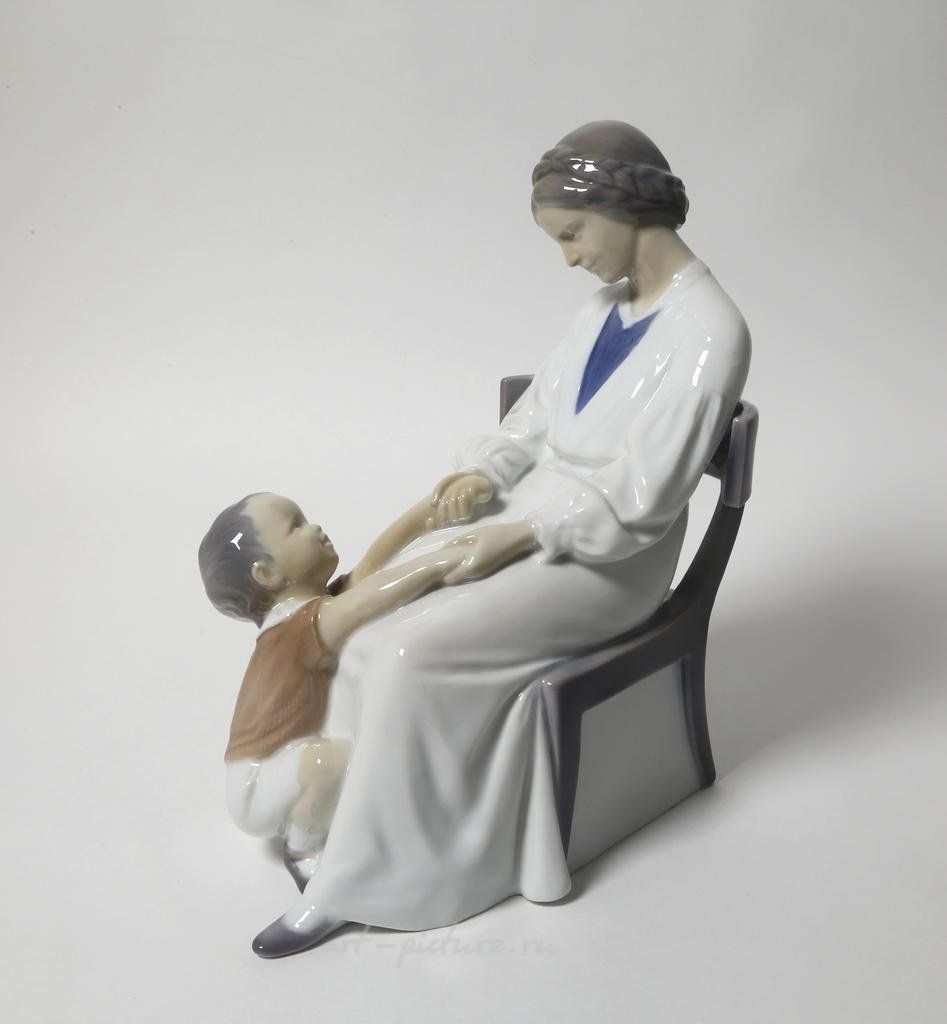 Рассмотрим предмет из фарфора, который представляет собой статуэтку, выполненную компанией Bing & Grondahl, известной качеством своих изделий и вниманием к деталям. Статуэтка изображает женщину с ребенком, что является характерным мотивом в искусстве и отражает важность эмоциональной связи в человеческих отношениях.