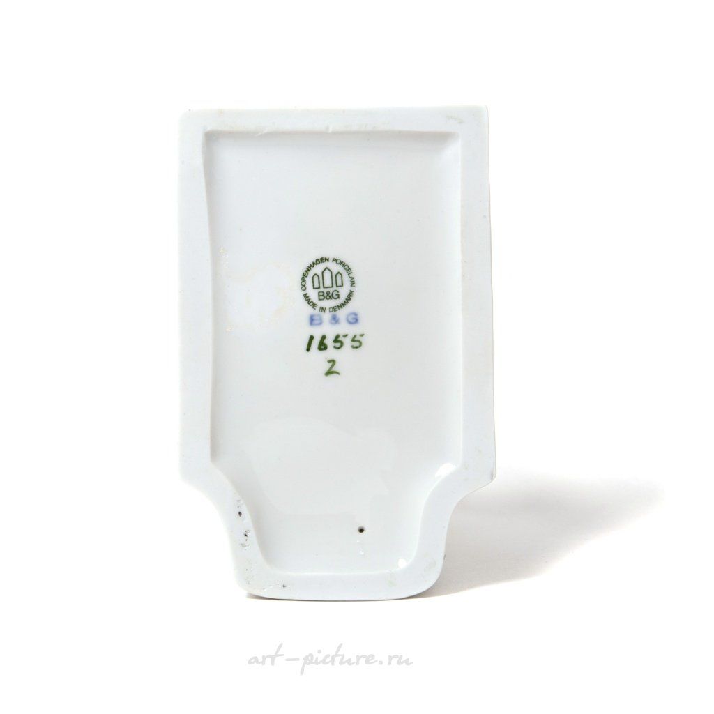 Фарфоровая фигура (статуэтка) (спичечница или карандашница) "Девочка со спичками". По мотивам одноименной сказки Х.К. Андерсена. Ручная подглазурная роспись. Дания, г. Копенгаген, Bing & Grondahl. Скульптор: Ingeborg Plockross Irminger. Клеймо производителя: 3 towers B&G Copenhagen Porcelain Made in Denmark, 1970-1983 гг. Номер модели - 1655. Инициалы художника, расписавшего статуэтку: Z. Высота - 13.5 см. Статуэтка первого сорта. Без сколов, повреждений и без реставраций. Porcelain figurine "The Little Match Girl". Based on the Hans Christian Andersen fairytale. Hand-painted underglaz. Denmark, Copenhagen, Bing & Grondahl. Sculptor: Ingeborg Plockross Irminger. Factory mark: 3 towers B&G Copenhagen Porcelain Made in Denmark, the 1970-1983. Model - 1655. The initials of the artist painted this figurine: Z. Height - 13.5 cm. Figurine of the first sort. Without chips, damage and restorations. BG_1655 Люди Дети Сказки