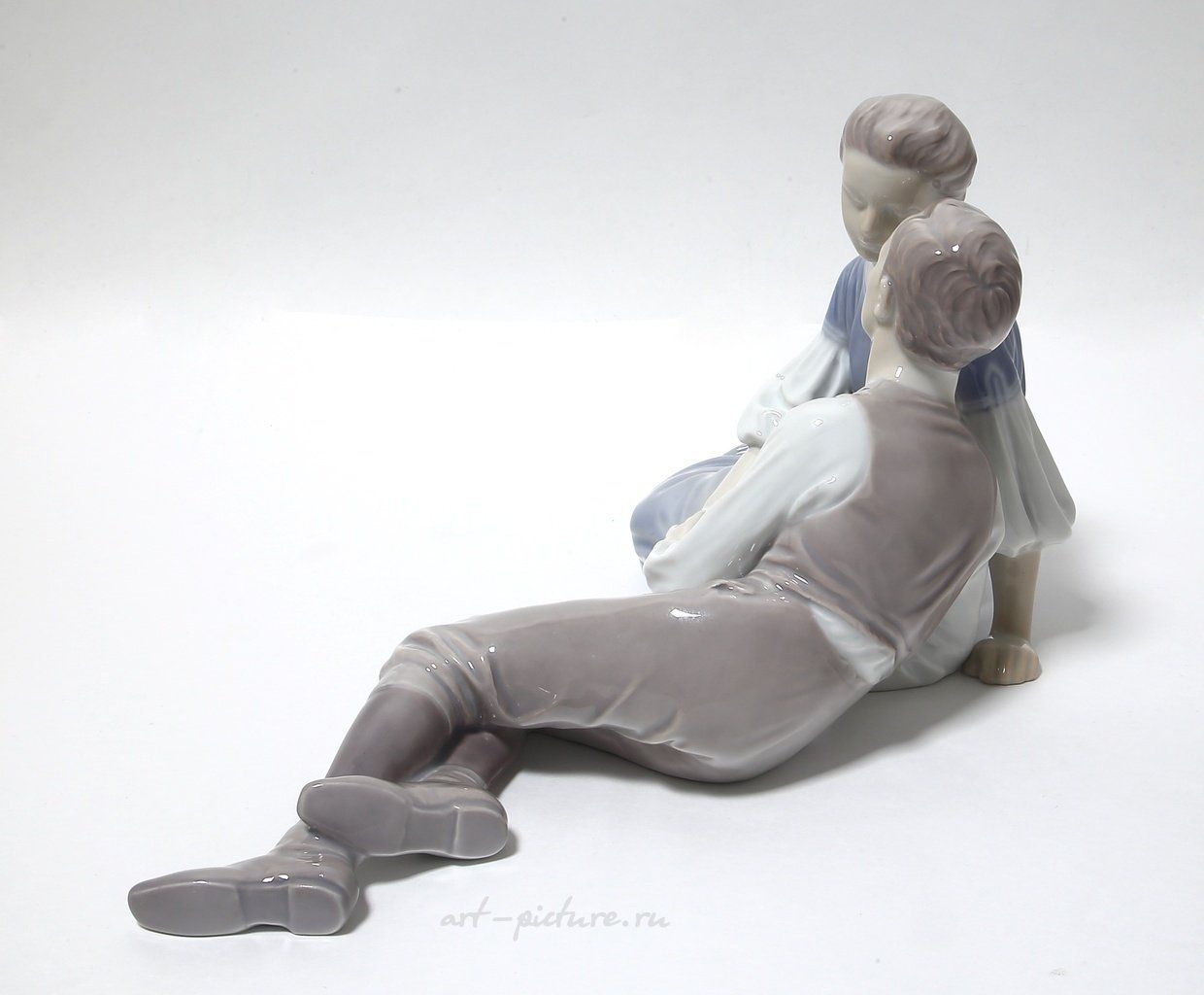 Редкая фарфоровая статуэтка "Юношеская любовь". Ручная подглазурная роспись. Дания, г. Копенгаген, Bing & Grondahl. Клеймо производителя: B&G Kjobenhavn Danmark B&G, 1915 г. Номер модели - 1680. Инициалы художника, расписавшего статуэтку: LL. Размер: 15,5 х 31,5 см. Без сколов, повреждений и без реставраций. Porcelain figurine "Teenage Lovers". Hand-painted underglaz. Denmark, Copenhagen, Bing & Grondahl. Factory mark: B&G Kjobenhavn Danmark B&G, 1915. Model - 1680. The initials of the artist painted this figurine: LL. Size: 15,5 х 31,5 cm. Without chips, damage and restorations. Bing & Grondahl 1680 (BG_1680).