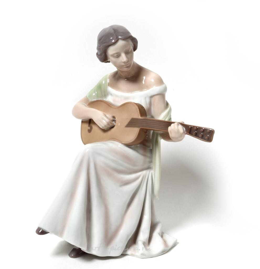 Porcelain figurine "Woman with guitar". Hand-painted underglaz. Denmark, Copenhagen, Bing & Grondahl. Sculptor: Ingeborg Plockross Irminger. Factory mark: B&G Kjobenhavn Denmark, 1962-1970. Model - 1684. The initials of the artist painted this figurine: T. Height - 24,5 cm. Figurine of the first sort. Without chips, damage and restorations. Bing & Grondahl 1684 (BG_1684). Люди Музыка