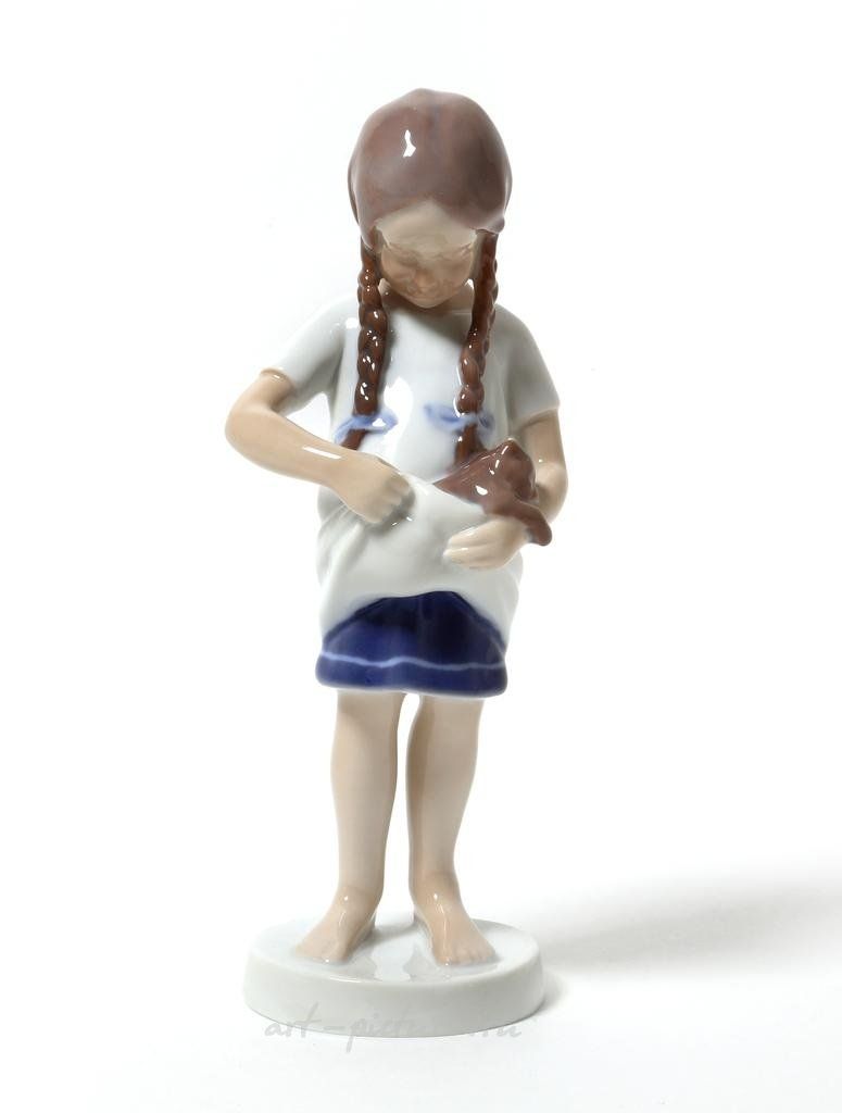 Фарфоровая статуэтка "Маленькая мама". Ручная подглазурная роспись. Дания, г. Копенгаген, Bing & Grondahl. Скульптор: Ingeborg Plockross Irminger. Клеймо производителя: 3 towers B&G Copenhagen Porcelain Made in Denmark, 1970-1983 гг. Номер модели - 1779. Инициалы художника, расписавшего статуэтку: CS. Высота - 17 см. Статуэтка первого сорта. Без сколов, повреждений и без реставраций. Porcelain figurine "Little Mother". Hand-painted underglaz. Denmark, Copenhagen, Bing & Grondahl. Sculptor: Ingeborg Plockross Irminger. Factory mark: 3 towers B&G Copenhagen Porcelain Made in Denmark, the 1970-1983. Model - 1779. The initials of the artist painted this figurine: CS. Height - 17 cm. Figurine of the first sort. Without chips, damage and restorations. BG_1779 Люди Дети Домашние животные