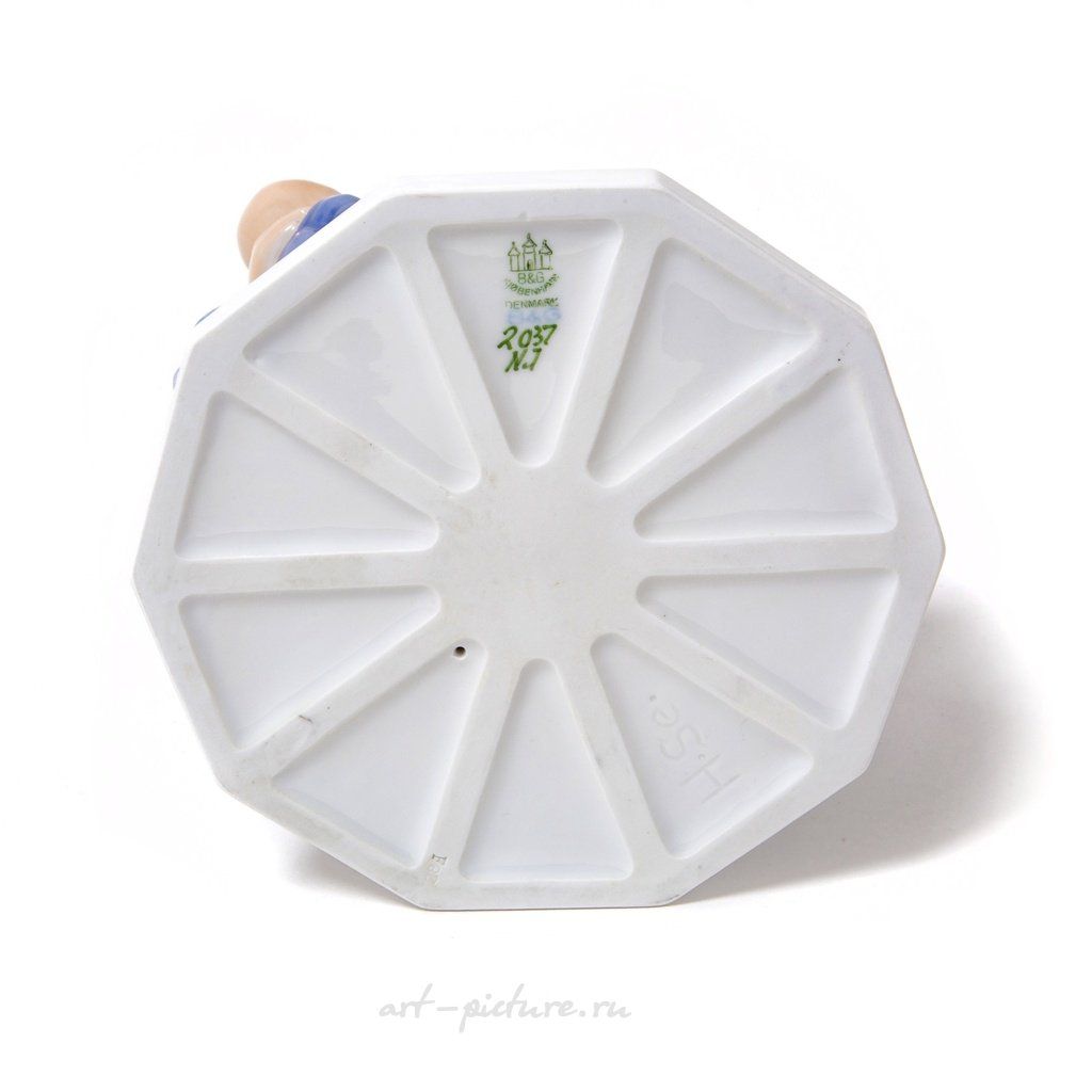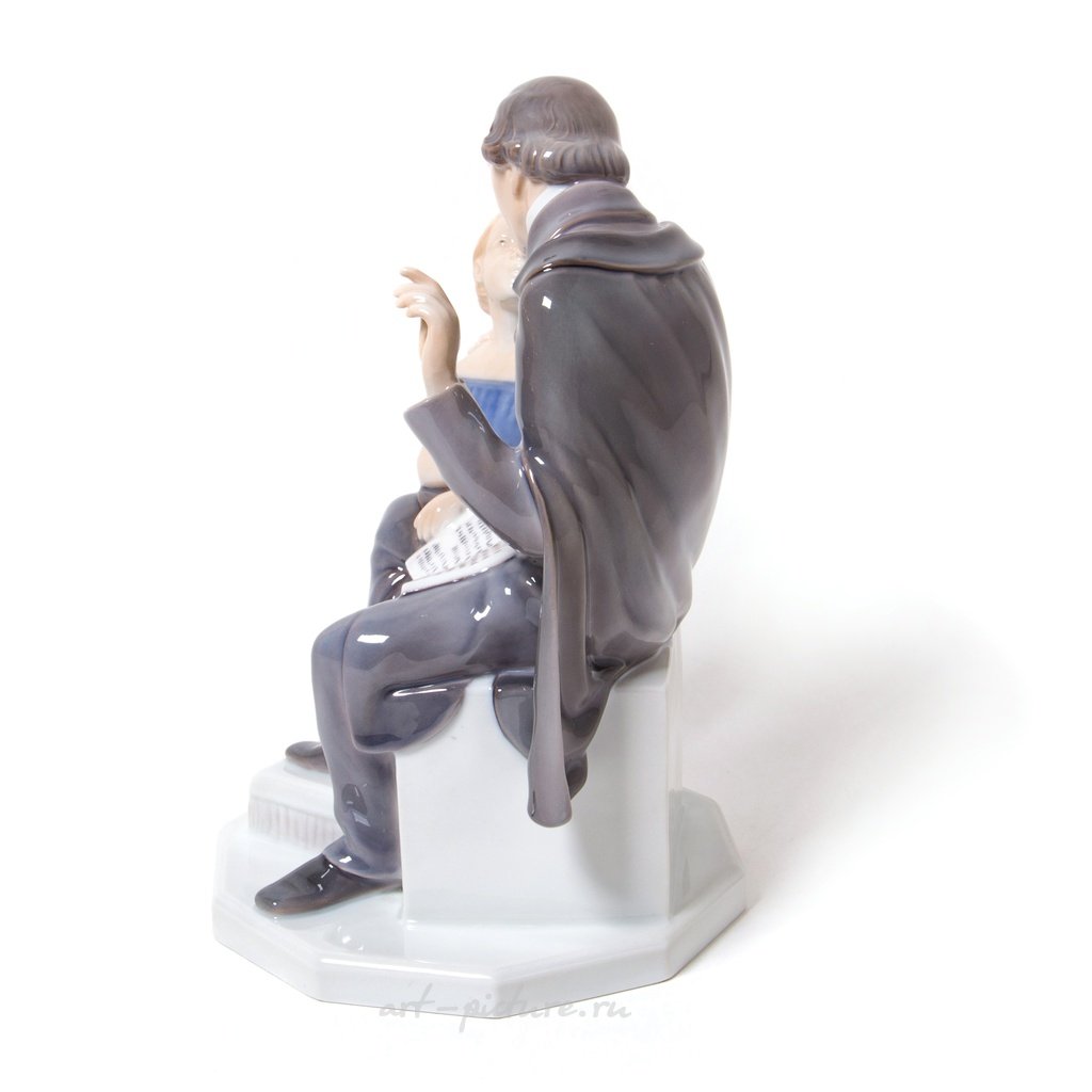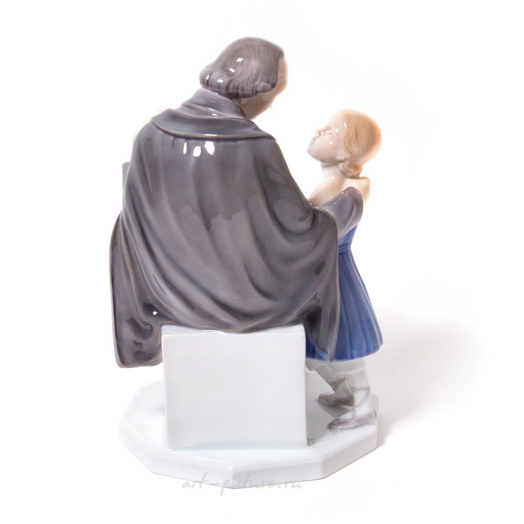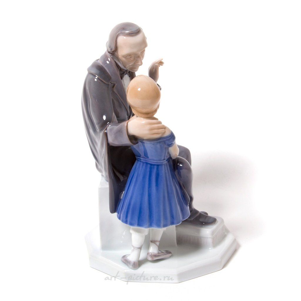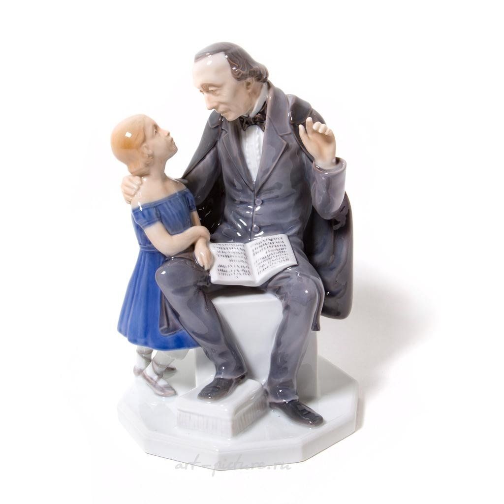 Фарфоровая фигура (статуэтка) "Писатель Ганс Христиан Андерсен с девочкой". Ручная подглазурная роспись. Дания, г. Копенгаген, Bing & Grondahl. Скульптор: Henning Seidelin. Клеймо производителя: B&G Kjobenhavn Denmark, 1962-1970 гг. Номер модели - 2037. Эта же фигура выпускалась фабрикой Royal Copenhagen, модель - 445. Инициалы художника, расписавшего статуэтку: NJ. Высота - 23 см. Статуэтка первого сорта. Без сколов, повреждений и без реставраций. Porcelain figurine "Writer Hans Christian Andersen with a girl". Hand-painted underglaz. "Hans Christian Andersen" by Pope's catalog. Denmark, Copenhagen, Bing & Grondahl. Sculptor: Henning Seidelin. Factory mark: B&G Kjobenhavn Denmark, the 1962-1970. Model - 2037. Also the same figurine was produced by the Royal Copenhagen, model - 445. The initials of the artist painted this figurine: NJ. Height - 23 cm. Figurine of the first sort. Without chips, damage and restorations. BG_2037 (RC_445) Люди Дети Книга