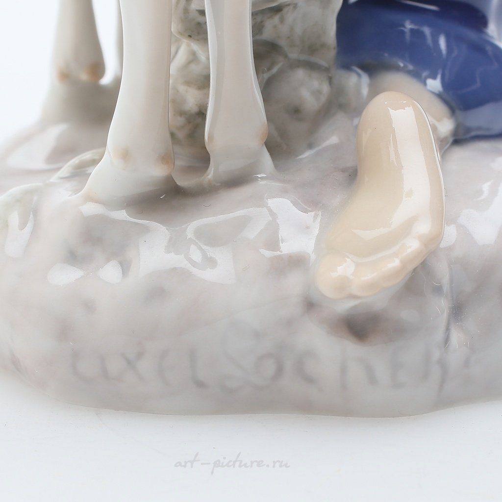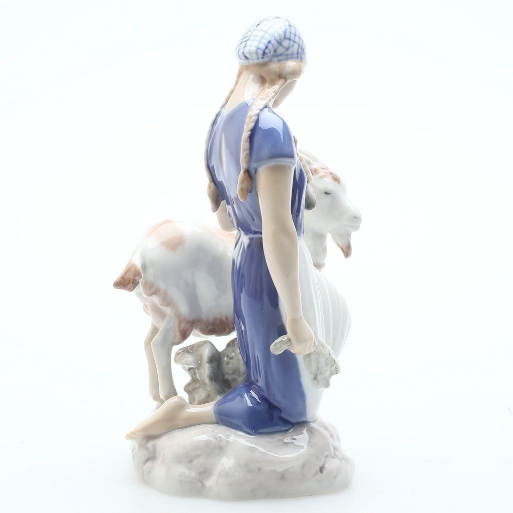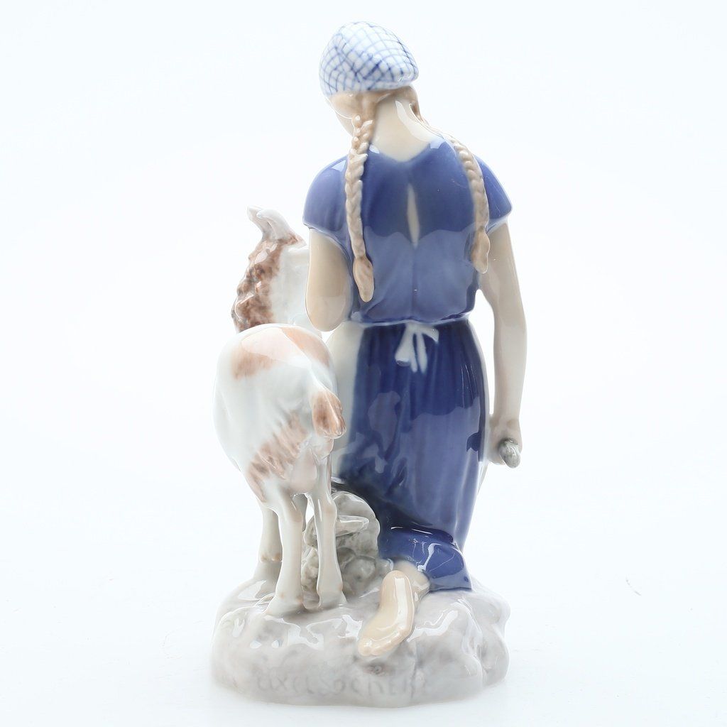 Фарфоровая статуэтка "Девушка с козой". Ручная подглазурная роспись. Дания, г. Копенгаген, Bing & Grondahl. Скульптор: Axel Locher. Клеймо производителя: B&G Kjøbenhavn Danmark Made in Denmark, 1958-1962 гг. Номер модели - 2180. Инициалы художника, расписавшего статуэтку: BR. Высота - 19,5 см. Статуэтка первого сорта. Без сколов, повреждений и без реставраций. Porcelain figurine "Girl with goat". Hand-painted underglaz. Denmark, Copenhagen, Bing & Grondahl. Factory mark: B&G Kjøbenhavn Danmark Made in Denmark, 1958-1962. Sculptor: Axel Locher. Model - 2180. The initials of the artist painted this figurine: BR. Height - 13,5 cm. Figurine of the first sort. Without chips, damage and restorations. Bing & Grondahl 2180 (BG_2180).