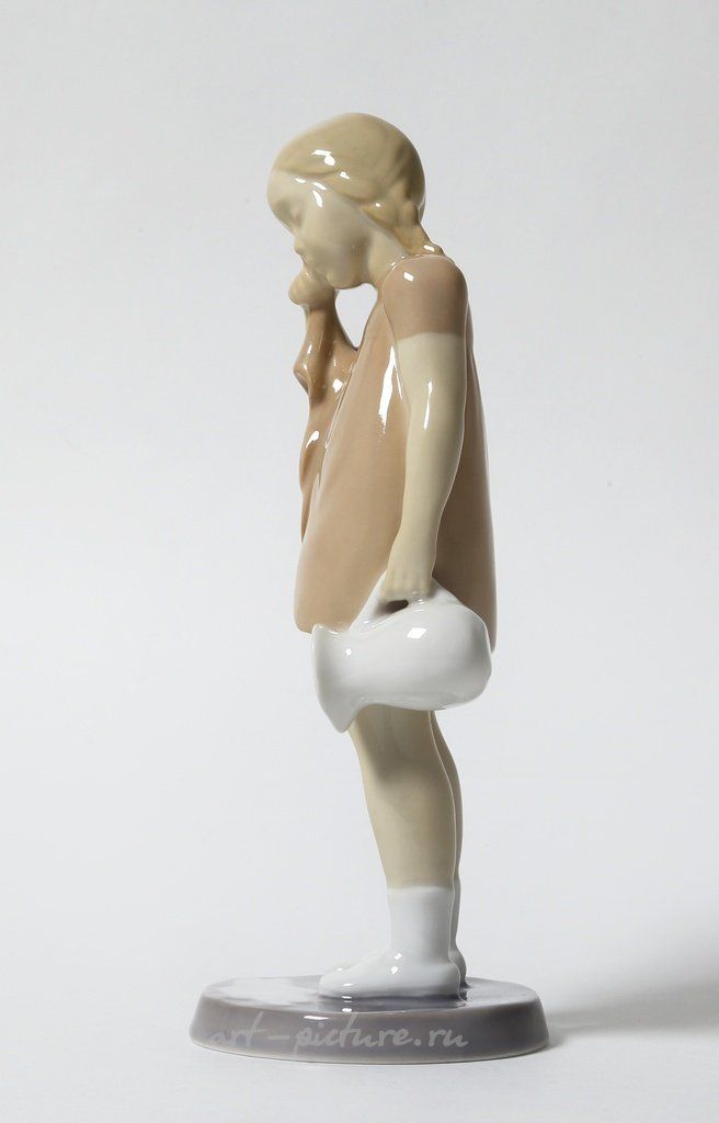 Фарфоровая статуэтка "Пролившая молоко". Ручная подглазурная роспись. Дания, г. Копенгаген, Bing & Grondahl. Скульптор: Claire Weiss. Клеймо производителя: B&G Kjobenhavn Made in Denmark, 1952 -1957 гг. Номер модели - 2246. Инициалы художника, расписавшего статуэтку: M Высота 17,5 см. Статуэтка первого сорта. Без сколов, повреждений и без реставраций. Porcelain figurine "Spilted milk". Hand-painted underglaz. Denmark, Copenhagen, Bing & Grondahl. Sculptor: Claire Weiss. Factory mark: B&G Kjobenhavn Made in Denmark, 1952 -1957. Model - 2246. The initials of the artist painted this figurine: M Height 17,5 cm. Figurine of the first sort. Without chips, damage and restorations. Bing & Grondahl 2246 (BG_2246)