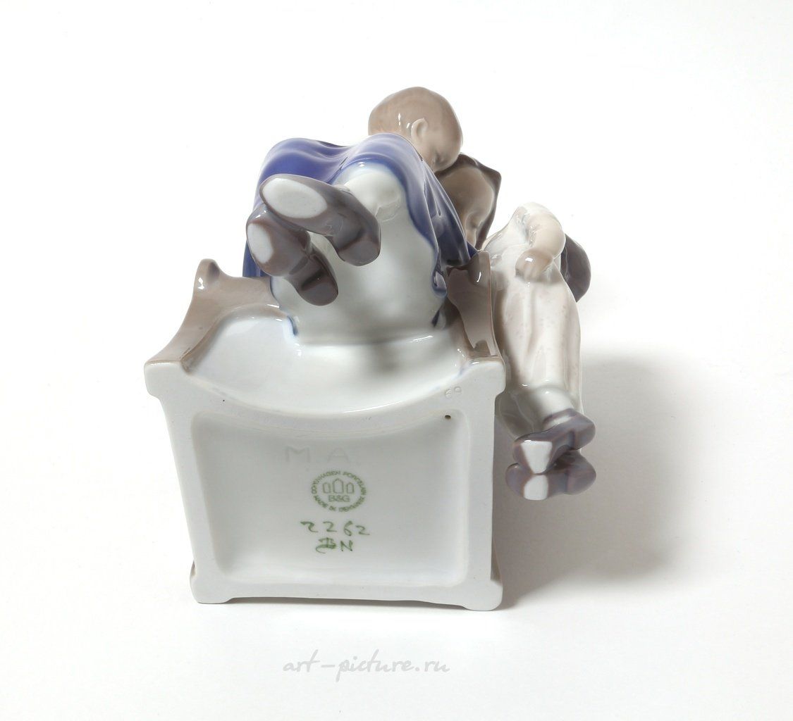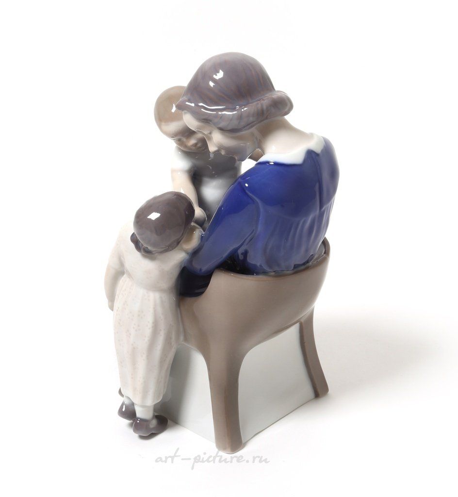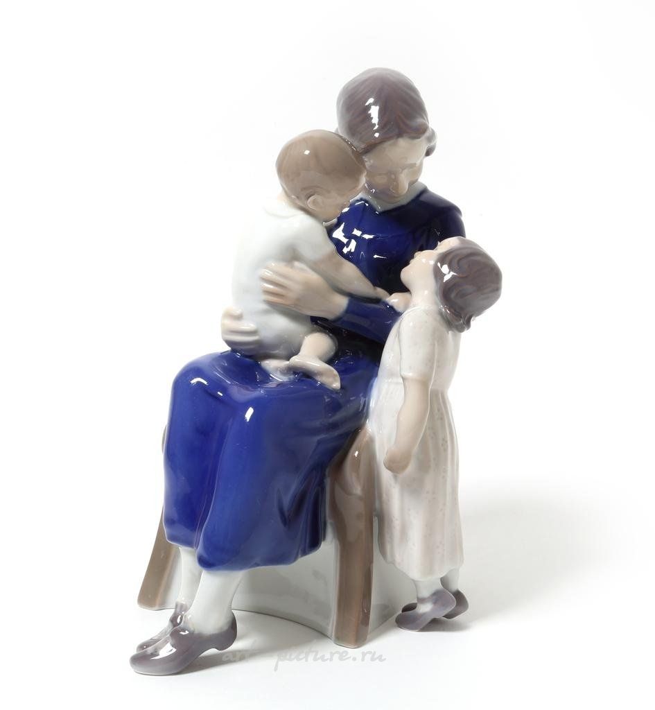Фарфоровая статуэтка "Счастливая семья". Ручная подглазурная роспись. Дания, г. Копенгаген, Bing & Grondahl. Скульптор: Michaela Ahlmann. Клеймо производителя: 3 towers B&G Copenhagen Porcelain Made in Denmark, 1970-1983 гг. Номер модели - 2262. Инициалы художника, расписавшего статуэтку: BN. Высота - 20 см. Статуэтка первого сорта. Без сколов, повреждений и без реставраций. Фигура производилась также после объединения фабрик Royal Copenhagen и Bing & Grondahl (1985-1989) под брендом Royal Copenhagen, номер модели: 468. Porcelain figurine "Happy family". Hand-painted underglaz. Denmark, Copenhagen, Bing & Grondahl. Sculptor: Michaela Ahlmann. Factory mark: 3 towers B&G Copenhagen Porcelain Made in Denmark, the 1970-1983. Model - 2262. The initials of the artist painted this figurine: BN. Height - 20 cm. Figurine of the first sort. Without chips, damage and restorations. The figurine was produced also after the merger of the factories Royal Copenhagen and Bing & Grondahl (1985-1989) under the brand name Royal Copenhagen, model: 468. BG_2262 (RCN_468) Люди Дети