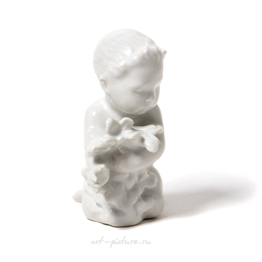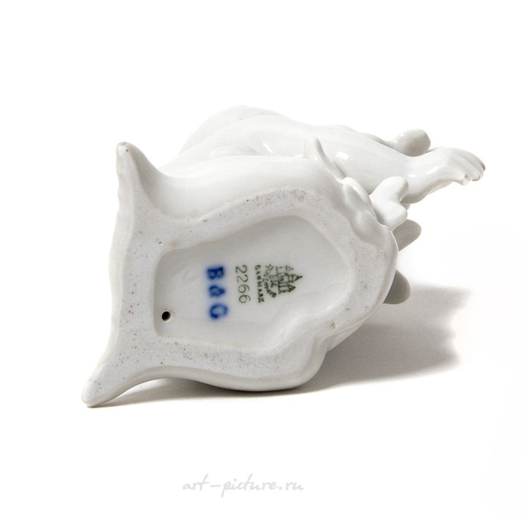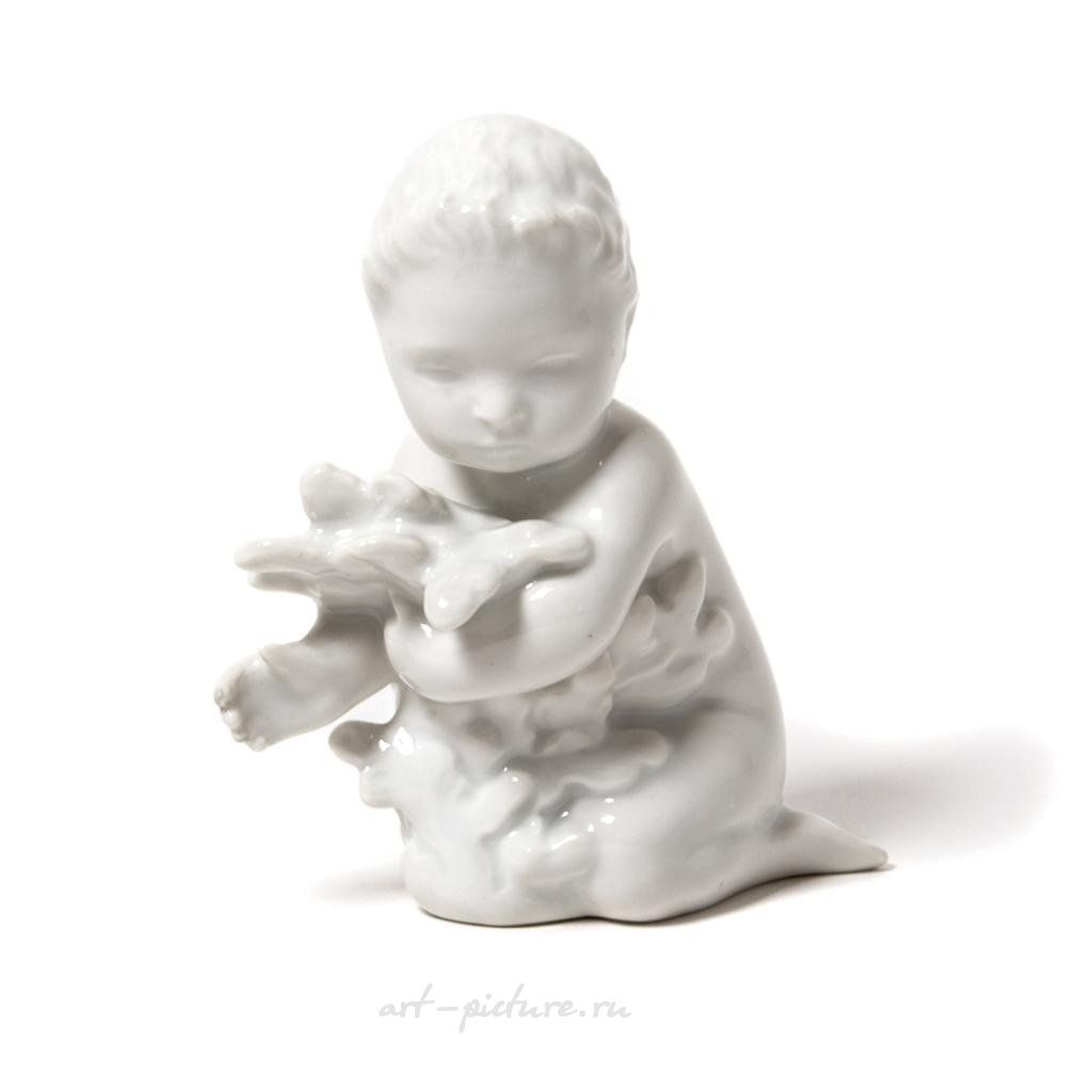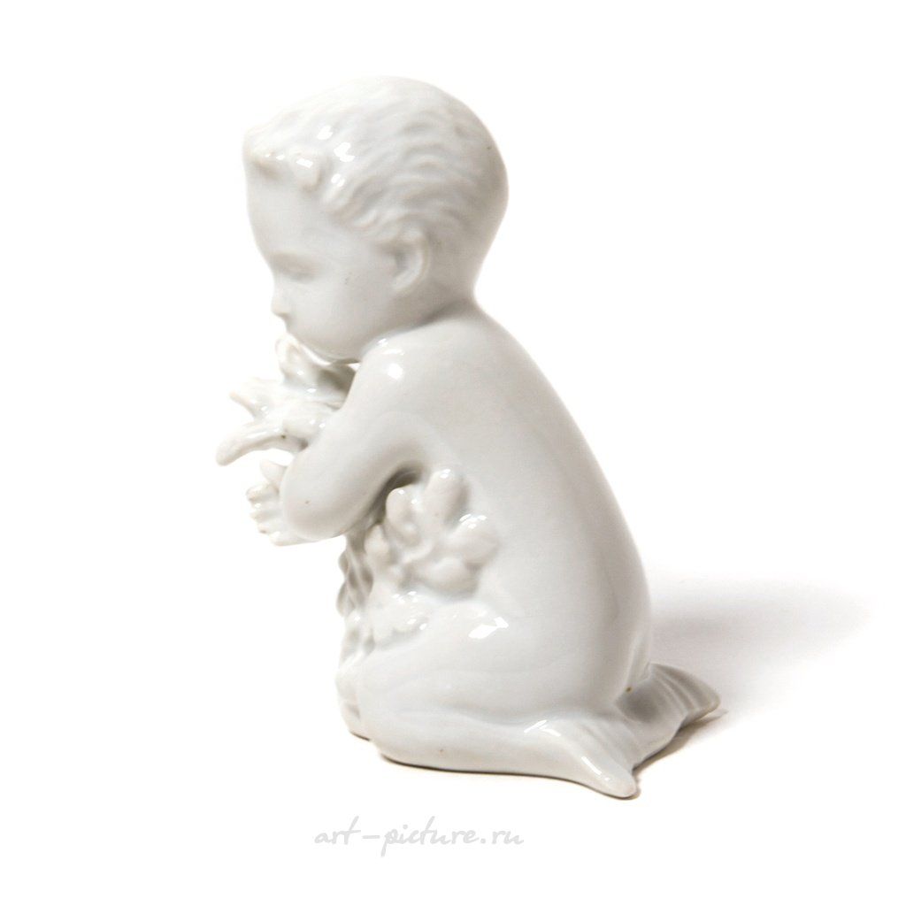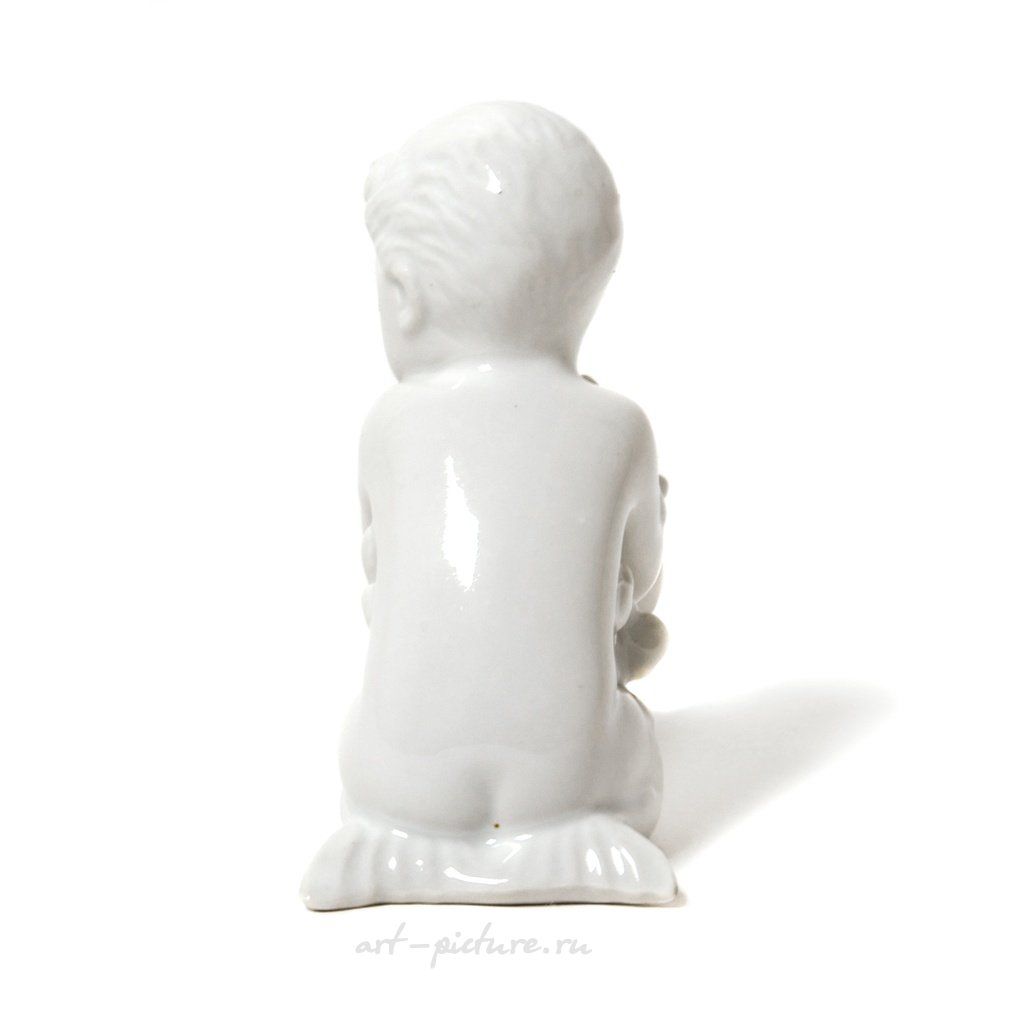 Фарфоровая фигура (статуэтка) "Мальчик-русалка с морскими водорослями". Нерасписанный белый фарфор. Белая глазурь. Дания, г. Копенгаген, Bing & Grondahl. Скульптор: Ebbe Sadolin/Svend Jespersen. Клеймо производителя: B&G Kjobenhavn Danmark B&G, 1948-1952 гг. Номер модели - 2266. Высота - 10 см. Статуэтка второго сорта. Без сколов, повреждений и без реставраций. Porcelain figurine "Sea boy with sea-weed". White glaze. Blanc de chine. Denmark, Copenhagen, Bing & Grondahl. Sculptor: Ebbe Sadolin/Svend Jespersen. Factory mark: B&G Kjobenhavn Danmark B&G, the 1948-1952. Model - 2266. Height - 10 cm. Figurine of the second sort. Without chips, damage and restorations. BG_2266 Люди Дети zzz