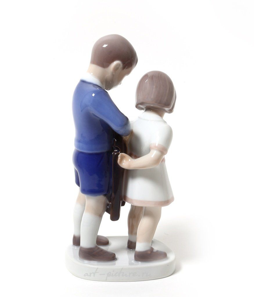 Статуэтка, о которой мы говорим, изображает два милых детских образа: мальчика в синем костюме и девочку в белом платье с розовым поясом. Это, безусловно, отметка классического стиля, который так сильно понимается в датском фарфоре. Визуально такая работа передает не только элегантность и изящество форм, но и простоту и невинность, присущую детскому восприятию мира. Плавные линии и мягкие пастельные оттенки делают рабочий процесс абсолютно чарующим, словно каждая деталь воссоздает атмосферу беззаботного детства.