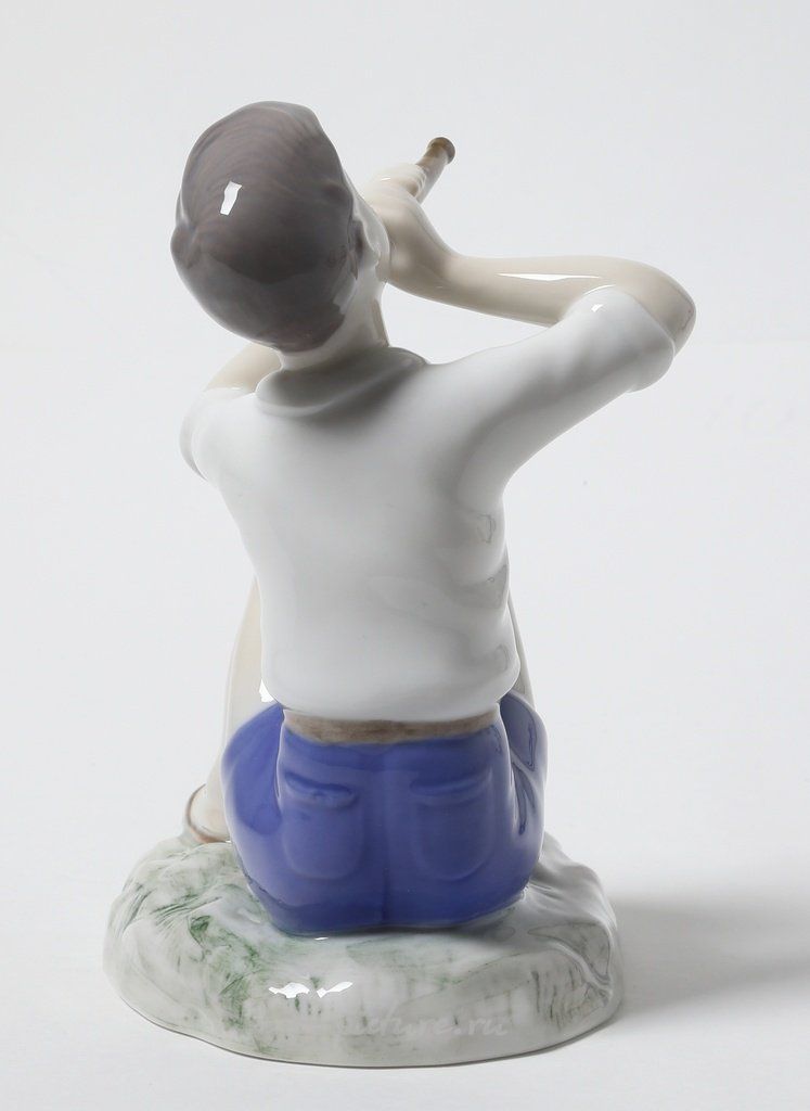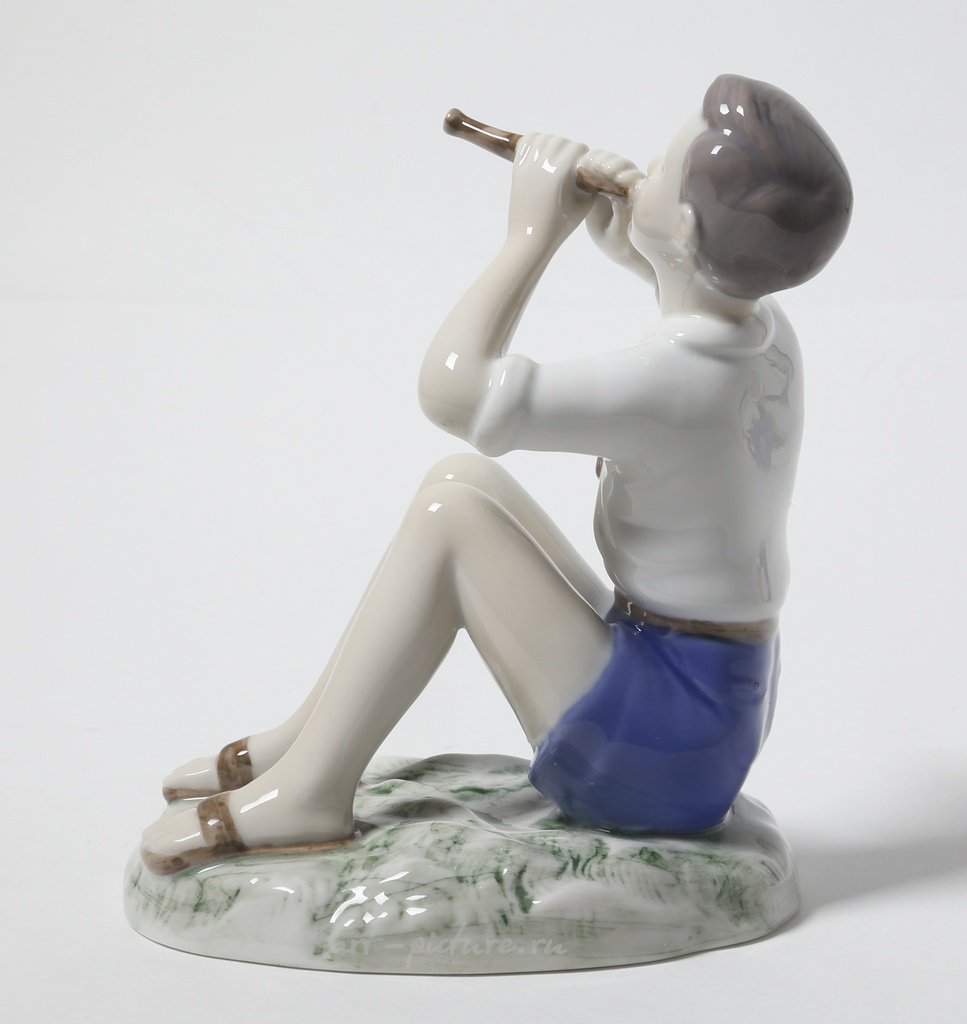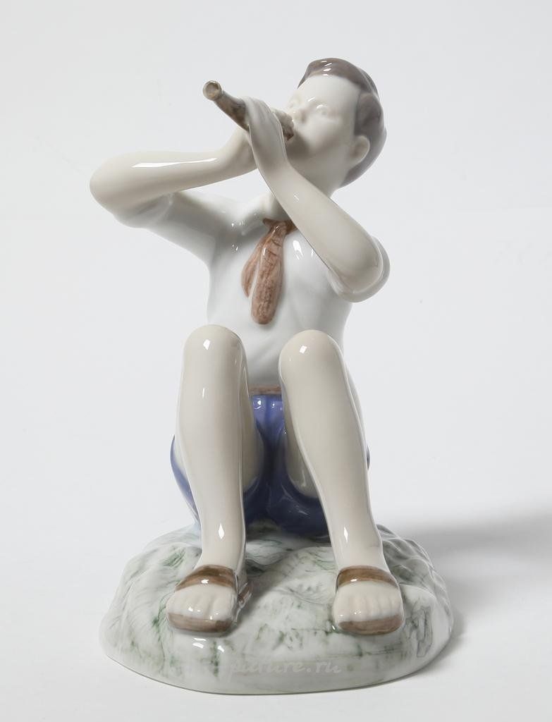Фарфоровая статуэтка "Мальчик играющий на флейте". Ручная подглазурная роспись. Дания, г. Копенгаген, Bing & Grondahl. Скульптор: Vita Thymann. Клеймо производителя: B&G Kjobenhavn Made in Denmark, 1952 -1957 гг. Номер модели - 2344. Инициалы художника, расписавшего статуэтку. Высота 13 см. Статуэтка первого сорта. Без сколов, повреждений и без реставраций. Porcelain figurine "Boy playing the flute". Hand-painted underglaz. Denmark, Copenhagen, Bing & Grondahl. Sculptor: Vita Thymann. Factory mark: B&G Kjobenhavn Made in Denmark, 1952 -1957. Model - 2344. The initials of the artist painted this figurine. Height 13 cm. Figurine of the first sort. Without chips, damage and restorations. Bing & Grondahl 12344 (BG_2344)