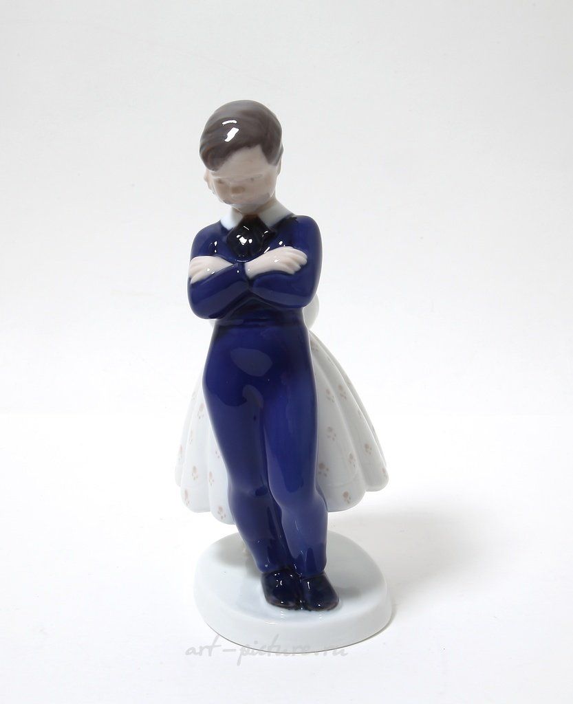 Фарфоровая статуэтка "Прости меня". Ручная подглазурная роспись. Дания, г. Копенгаген, Bing & Grondahl. Скульптор: Claire Weiss. Клеймо производителя: B&G Kjobenhavn Denmark, 1962-1970 гг. Номер модели - 2372. Инициалы художника, расписавшего статуэтку. Высота - 20 см. Статуэтка первого сорта. Без сколов, повреждений и без реставраций. Porcelain figurine "Pardon me". Hand-painted underglaz. Denmark, Copenhagen, Bing & Grondahl. Sculptor: Claire Weiss. Factory mark: B&G Kjobenhavn Denmark, 1962-1970. Model - 2372. The initials of the artist painted this figurine Height - 20 cm. Figurine of the first sort. Without chips, damage and restorations. Bing & Grondahl 2372 (BG_2372) Люди Дети